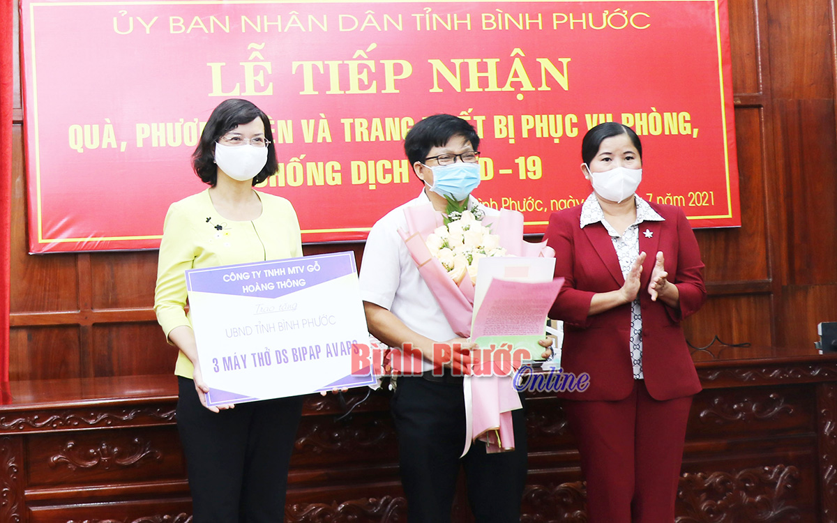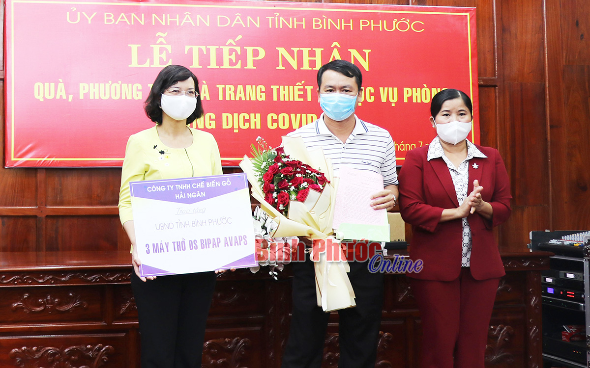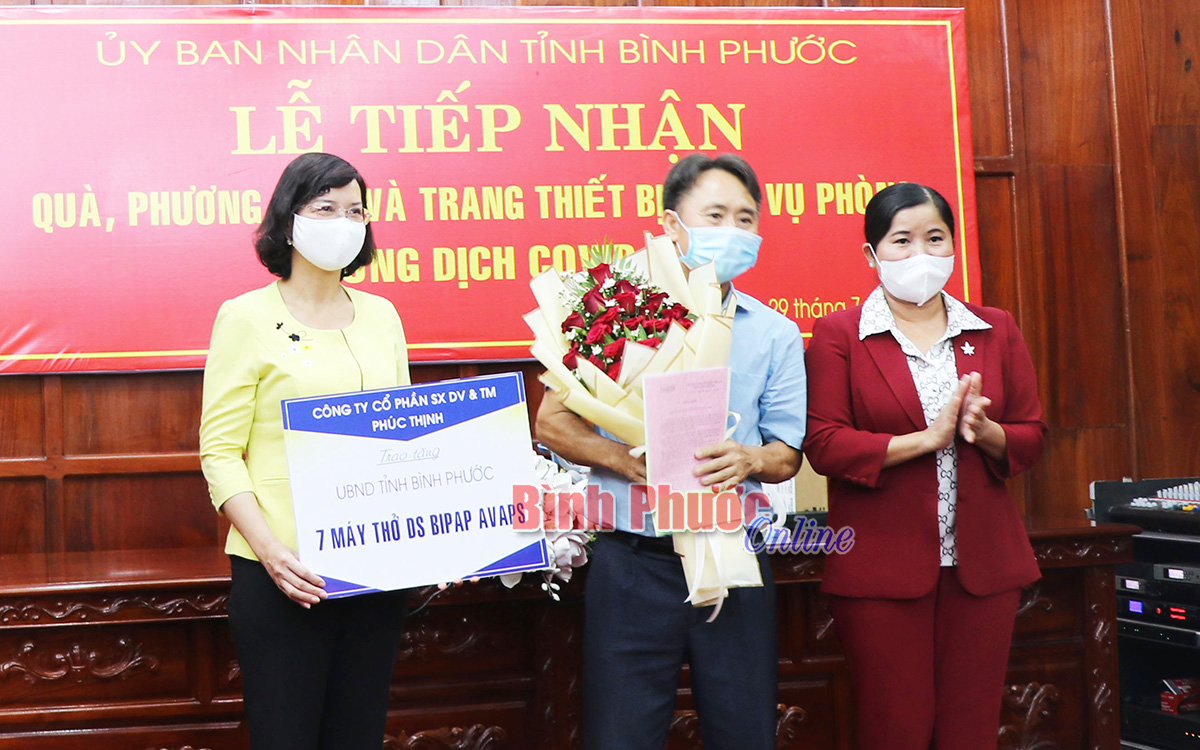 20 máy thở hiệu DS BiPAP AVAPS được trao cho huyện Bù Đăng 3 máy; thị xã Phước Long 2 máy; huyện Bù Gia Mập 5 máy; Lộc Ninh 3 máy; Hớn Quản 3 máy; Bù Đốp 2 máy và Phú Riềng 2 máy.