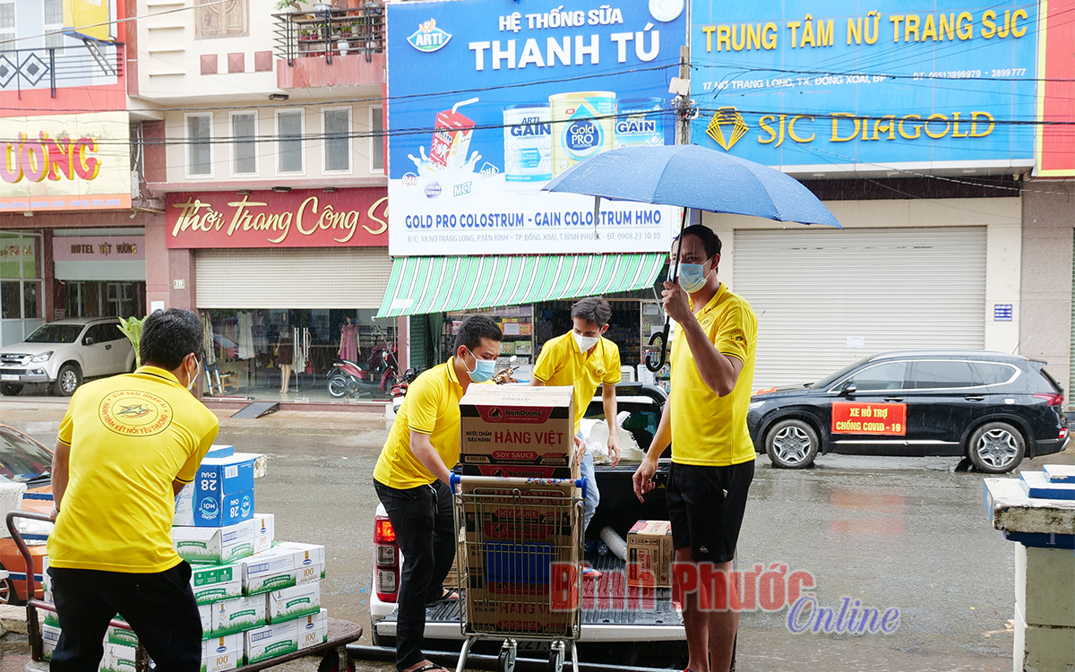 Ngay sau khi làm xong xét nghiệm PCR, Đội phản ứng nhanh Sao Nhân ái tiếp tục đi chuẩn bị quà để sáng mai đi tặng các hộ dân nghèo ở huyện Bù Gia Mập