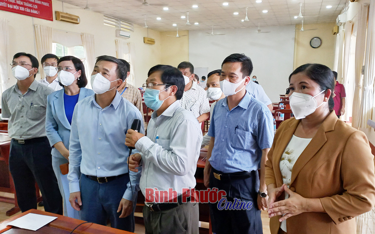 Đoàn công tác cũng đã làm việc với Bệnh viện đa khoa tỉnh về tình hình điều trị cho 2 ca bệnh nặng tại đây. Với vai trò là tầng cao nhất trong phân tầng điều trị của tỉnh, Thứ trưởng Bộ Y tế chúc mừng Bệnh viện đa khoa tỉnh vừa cho xuất viện một ca bệnh nhân nhiễm Covid-19 có diễn tiến nặng, đồng thời mong đội ngũ y tế của Bình Phước tiếp tục nỗ lực trong điều trị bệnh nhân.