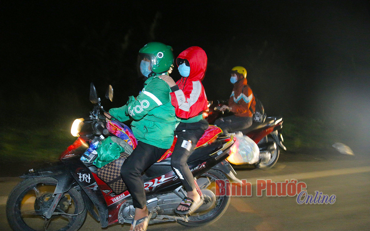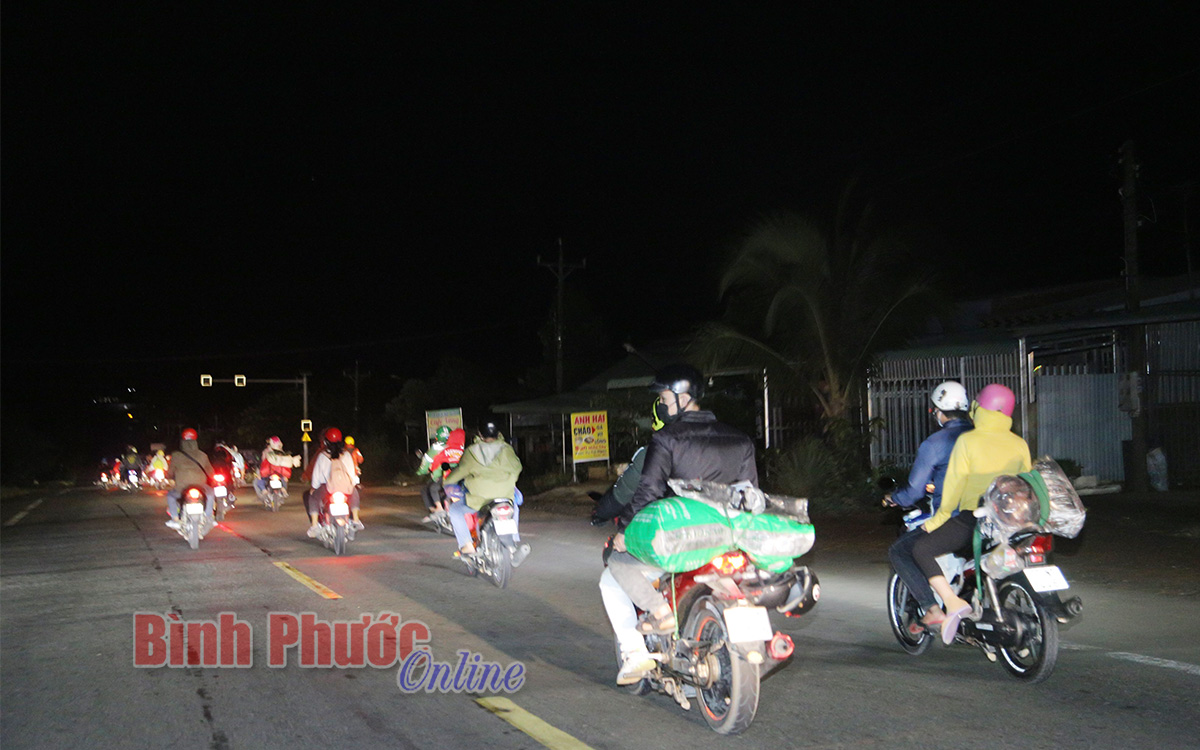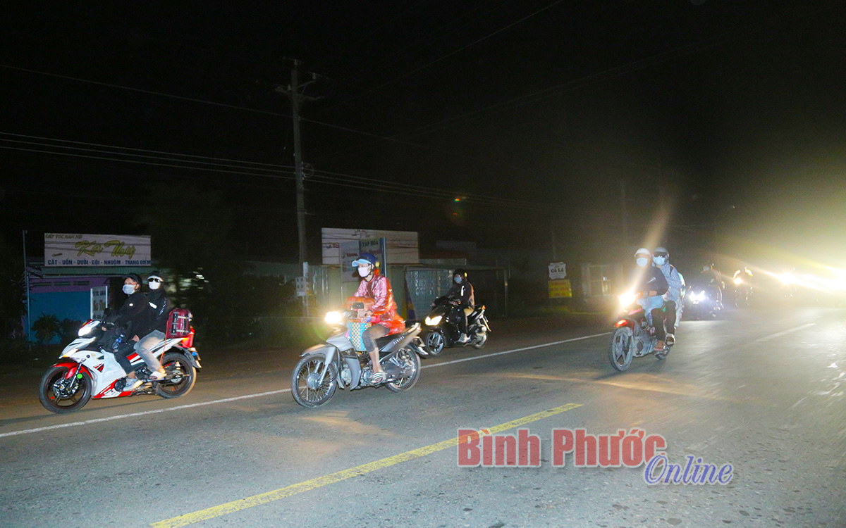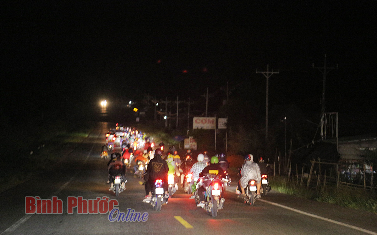 Dòng người di chuyển trong đêm khuya chuẩn bị rời địa bàn tỉnh Bình Phước để vào địa phận tỉnh Đắk Nông