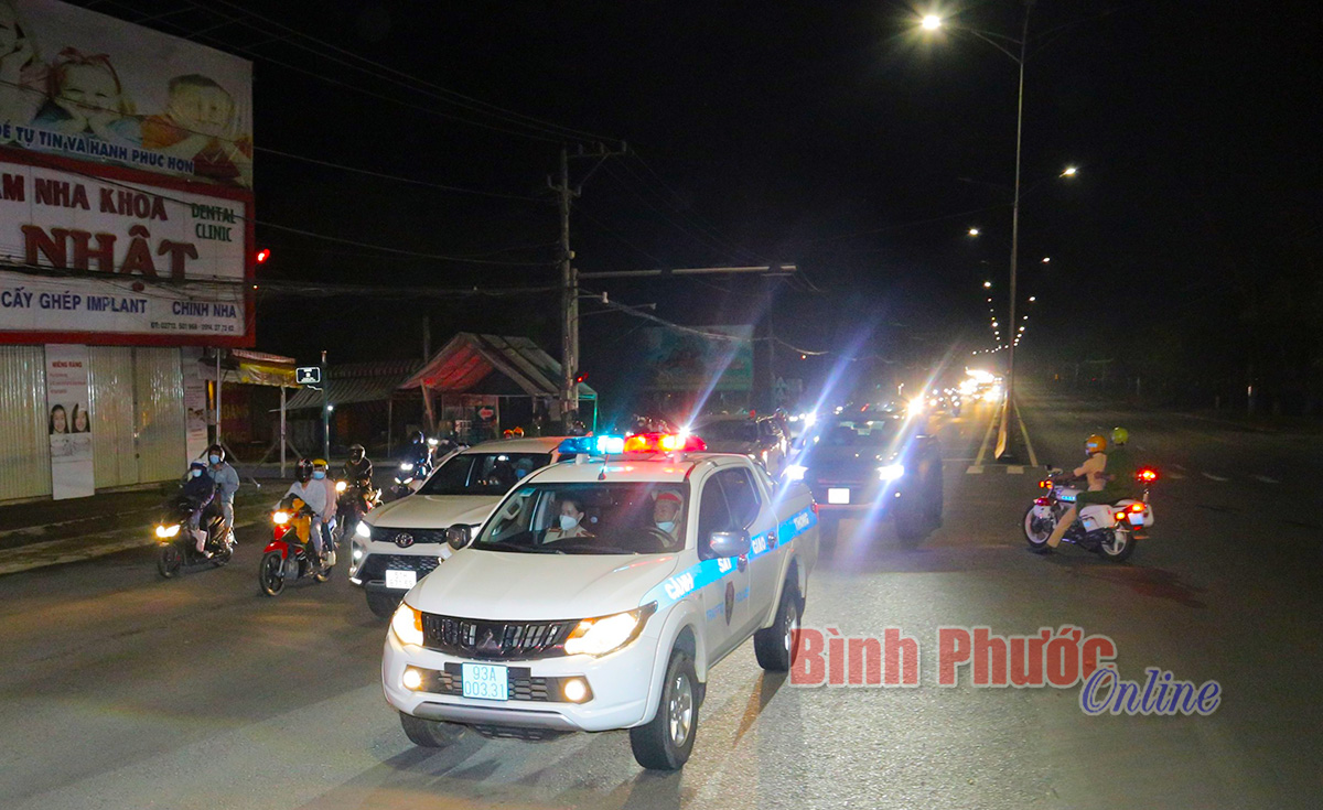 Ngoài dẫn đường, trên dọc tuyến, công an, dân quân các địa phương cũng được huy động tối đa để đảm bảo các phương tiện đi đúng hành trình, không tự ý dừng, đỗ trên địa bàn tỉnh Bình Phước