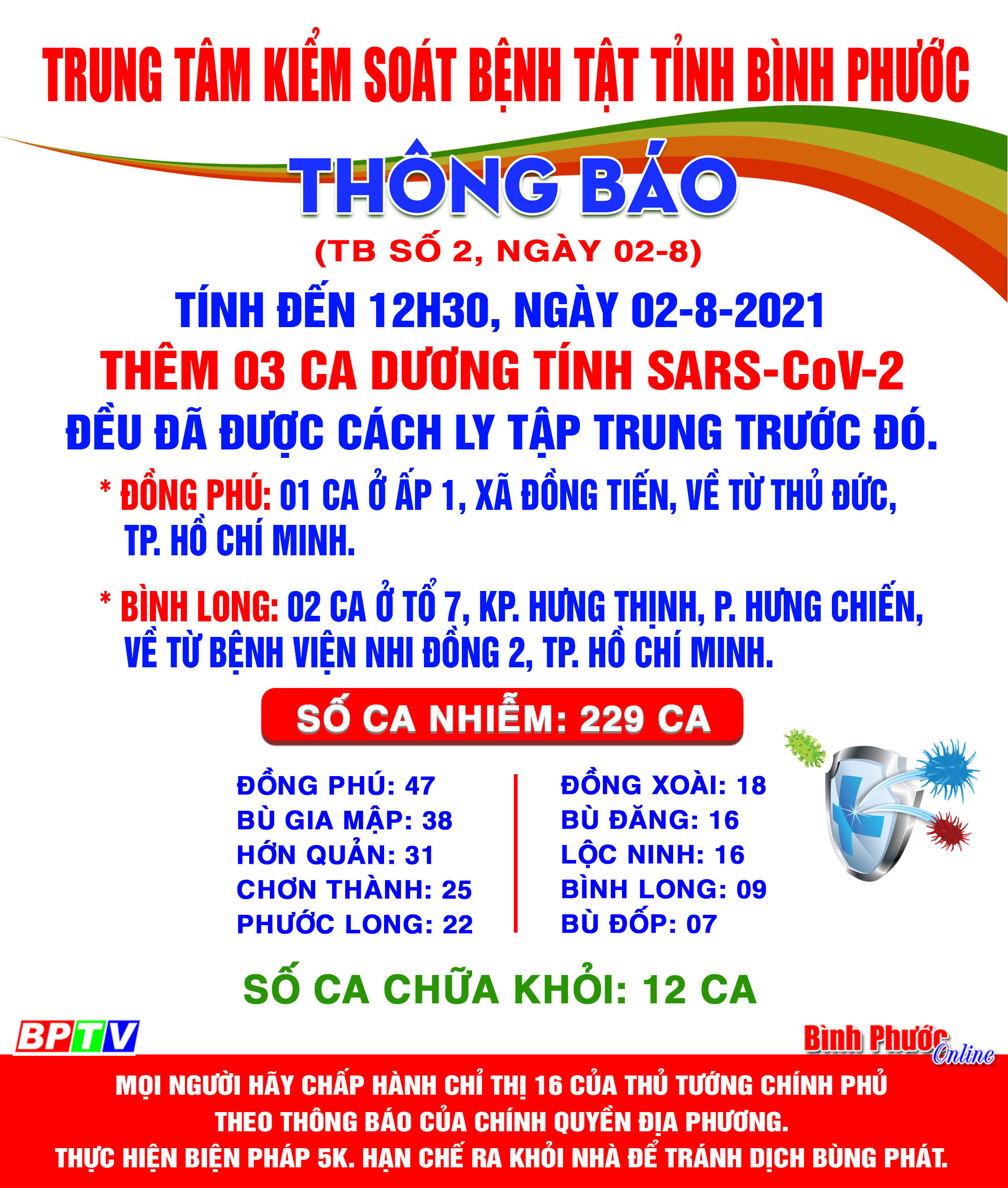 Theo điều tra dịch tễ, ngày 30-7, cháu P.Đ.N cùng 1 cháu gái khác được người thân chở bằng xe máy từ thành phố Hồ Chí Minh về nhà. Sau khi khai báo y tế tại chốt kiểm soát dịch bệnh Covid-19 số 2 xã Tân Lập, cả 3 được Trung tâm Y tế huyện Đồng Phú dùng xe chuyên dụng đưa về khu cách ly tập trung tại Trường Mầm non Tân Tiến do đi về từ vùng dịch.
