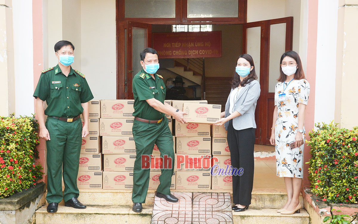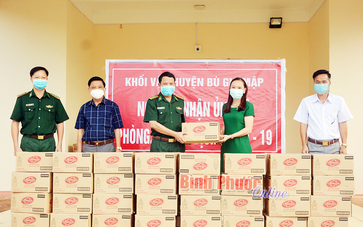 Đoàn đã tặng lại Hội Liên hiệp phụ nữ huyện Bù Gia Mập 65 thùng gel sát khuẩn, số còn lại trao cho Hội Liên hiệp phụ nữ huyện Bù Đốp. Đây là số vật dụng Hội Liên hiệp phụ nữ tỉnh vận động từ các mạnh thường quân trong và ngoài tỉnh hỗ trợ.