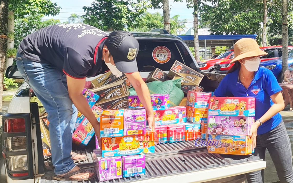 Đội hỗ trợ 24/7 Pickup Bình Phước, đoàn viên thanh niên huyện Bù Đốp vận chuyển hàng hóa tại điểm tiếp nhận quà tặng hỗ trợ Covid-19, Hội đồng Đội huyện Bù Đốp