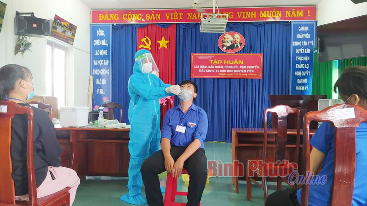 Đoàn viên thanh niên tập huấn thao tác và kỹ năng lấy, bảo quản mẫu xét nghiệm Covid-19