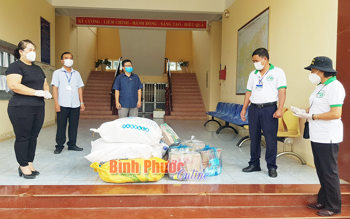Đại diện phường Tân Thiện, TP. Đồng Xoài nhận quà trao tặng cho người lao động khó khăn do chương trình hỗ trợ