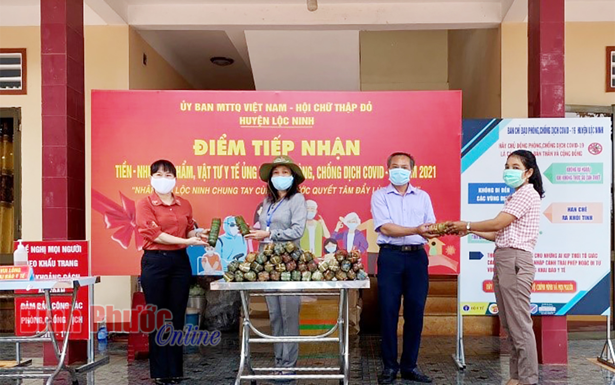Bánh tét trao tặng Ủy ban MTTQ Việt Nam huyện Lộc Ninh tiếp sức lực lượng làm nhiệm vụ phòng chống dịch