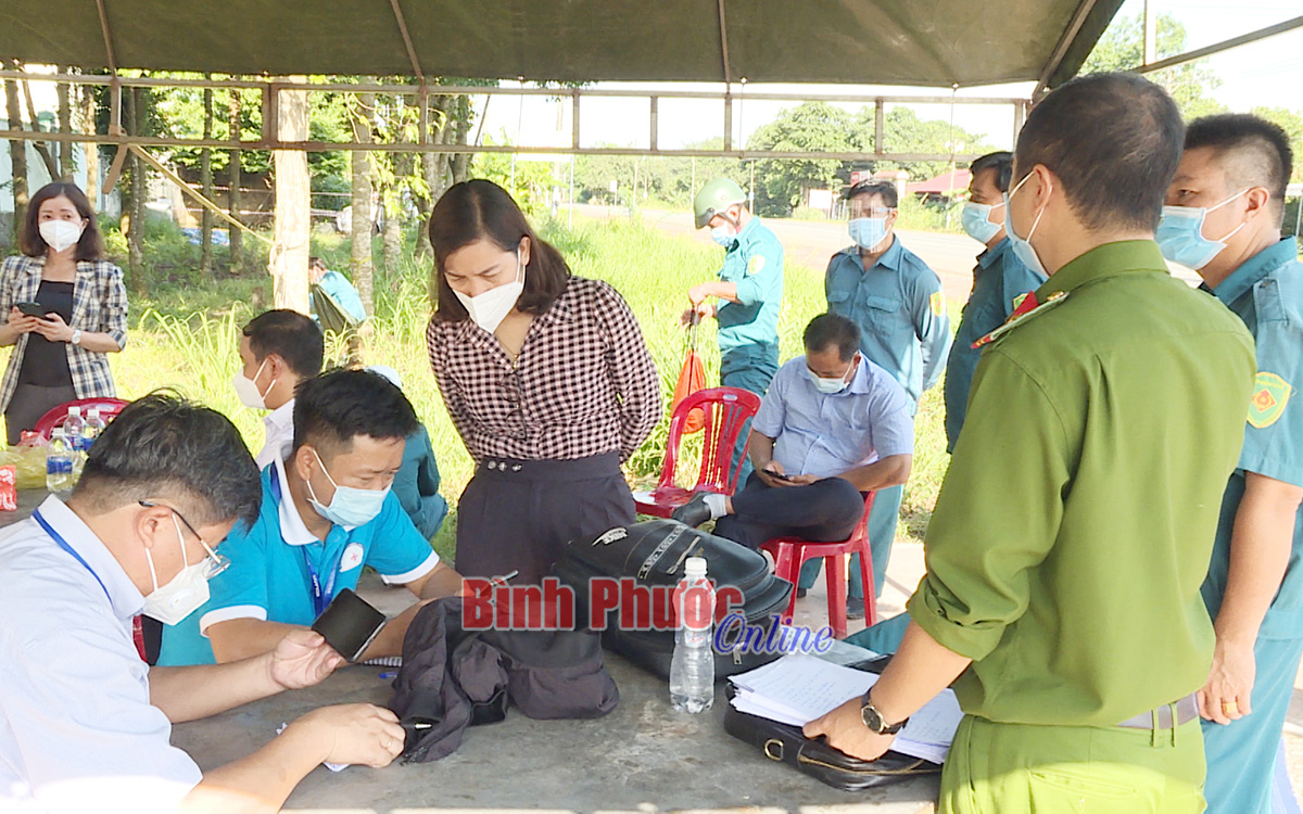 Lực lượng chức năng của thành phố Đồng Xoài có mặt từ rất sớm để xử lý chùm ca lây nhiễm tại Công ty Nguyên Bình