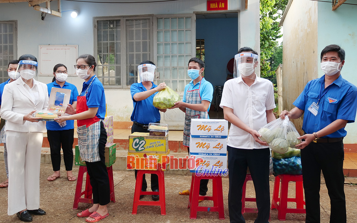 Các đơn vị tặng quà tiếp sức đội hình thanh niên tình nguyện nấu ăn tại xã Thanh Phú, thị xã Bình Long
