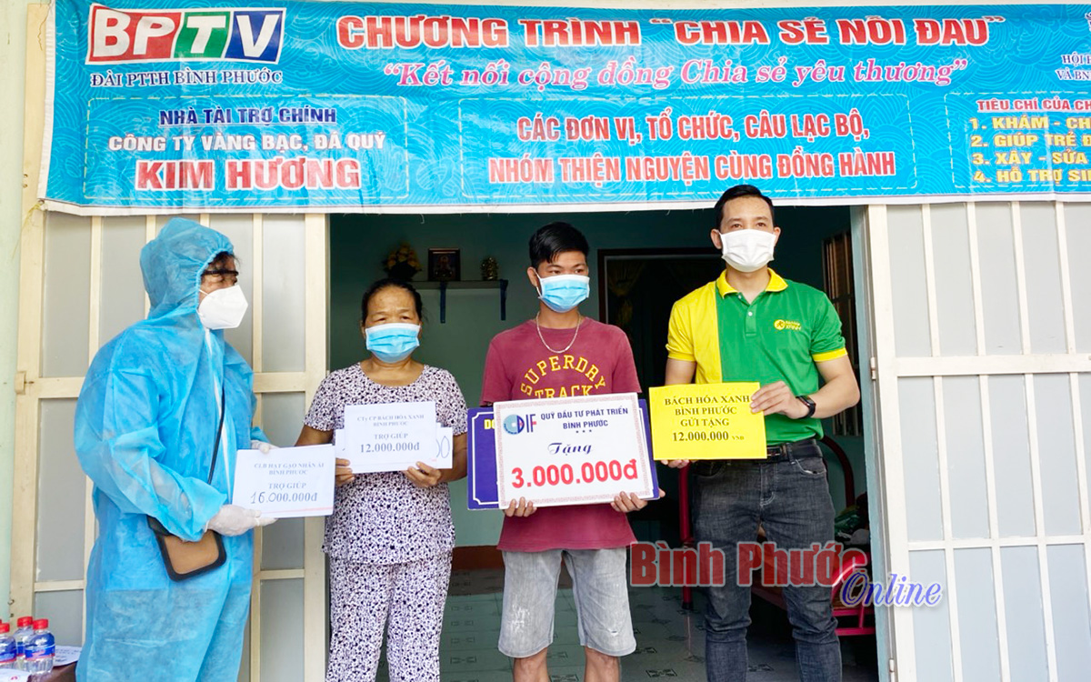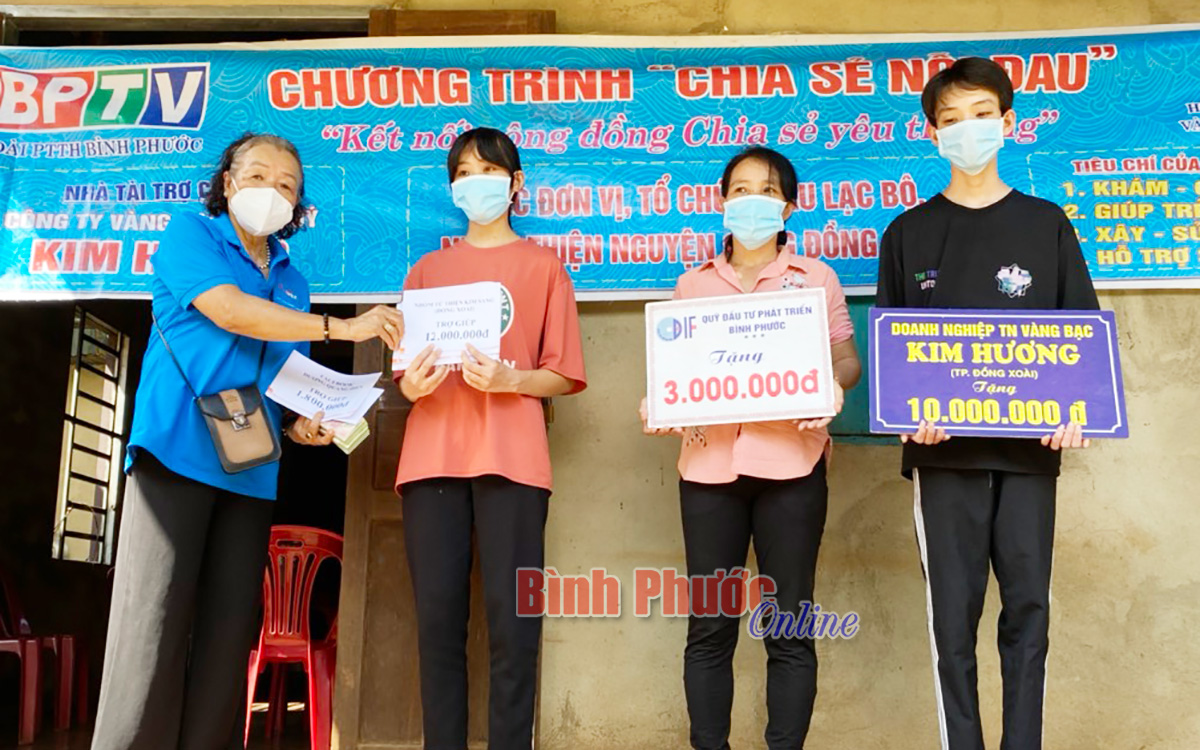 Hoàn cảnh đầu tiên chương trình đến sẻ chia là gia đình bà Nguyễn Thị Điệp (SN 1957) ở khu phố 3, thị trấn Chơn Thành, huyện Chơn Thành. Sau 2 lần đổ vỡ hôn nhân, mặc dù hiện nay tuổi già, sức yếu, bà Điệp vẫn đang là chỗ dựa cho 2 người con trai bệnh tật. Người con lớn là anh Nguyễn Minh Phương (SN 1983), đã hơn 30 năm nay phải nằm liệt một chỗ vì căn bệnh “viêm đa khớp”; con út là anh Nguyễn Hoàng Phúc (SN 1994) cũng thường xuyên bệnh tật, tâm trí không ổn định.