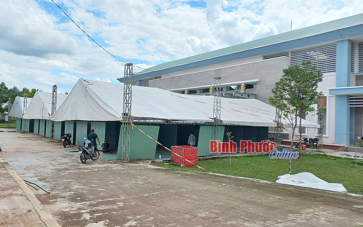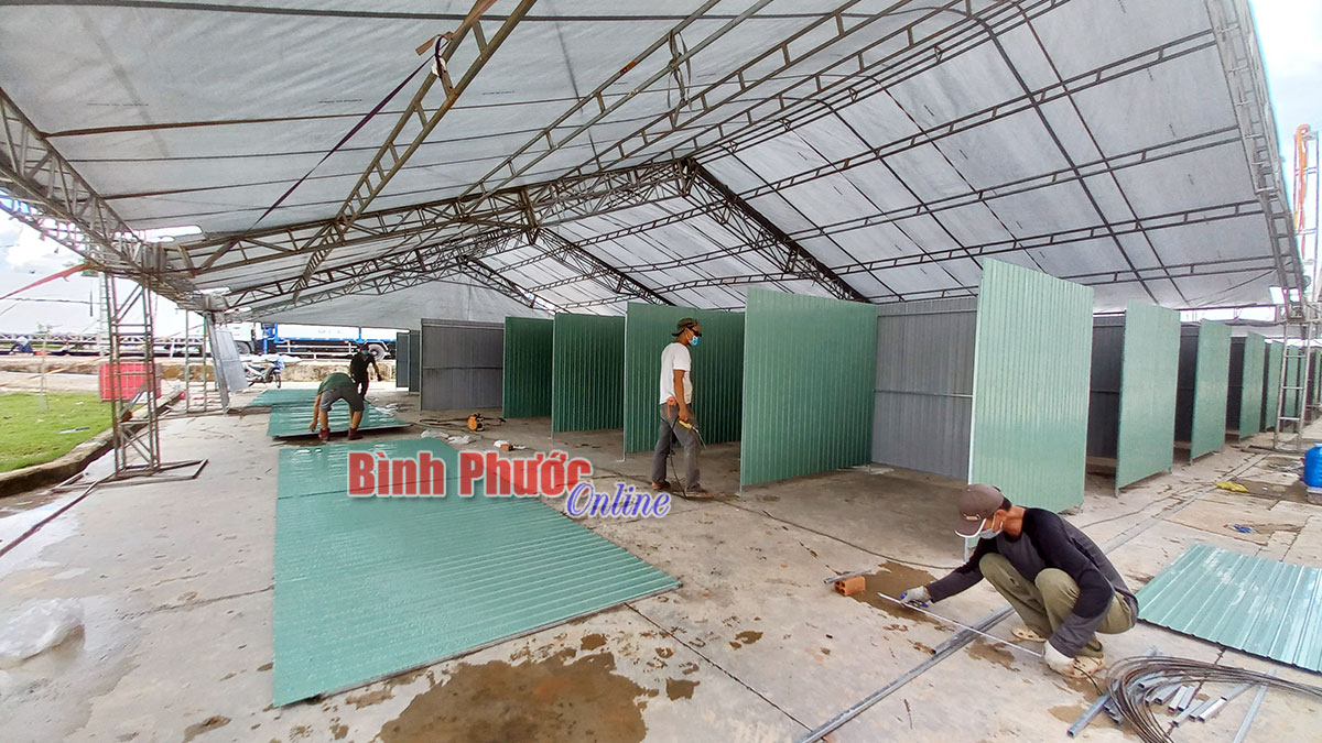 Đơn vị thi công đang tập trung công nhân đẩy nhanh tiến độ để hoàn thành khu cách ly theo đúng kế hoạch