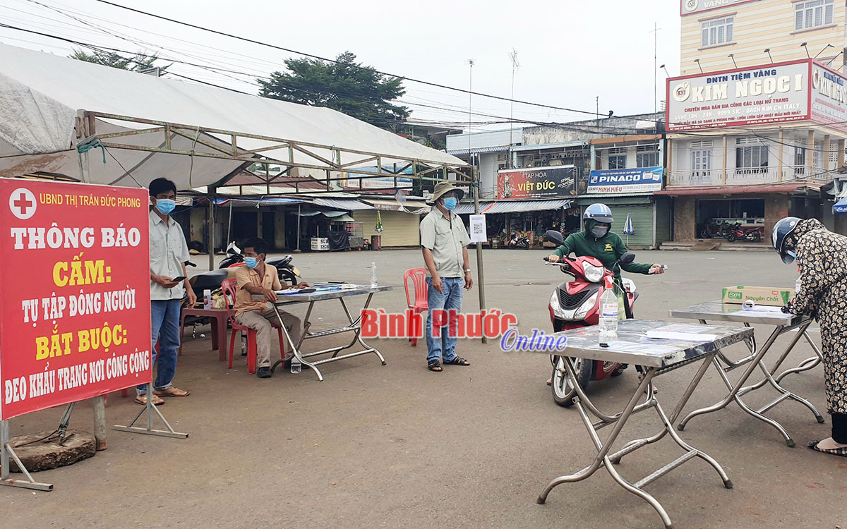Tất cả người dân vào chợ Bù Đăng đều phải khai báo y tế và nhật ký đi lại. Ảnh: Quang Xuân
