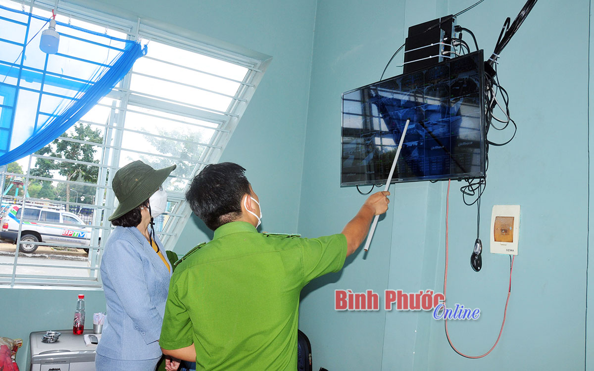 Phó chủ tịch UBND tỉnh Trần Tuyết Minh kiểm tra hệ thống camera an ninh giám sát tại Trung tâm chỉ huy, điều hành khu cách ly