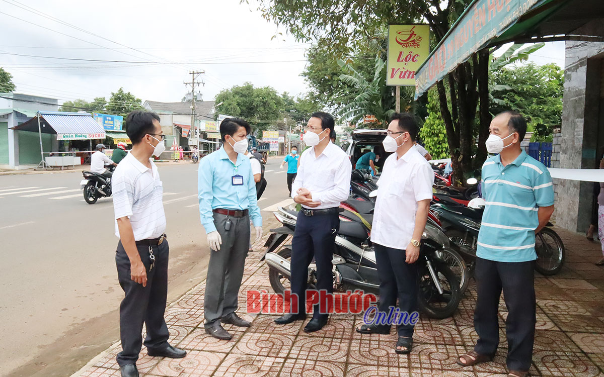 Phó chủ tịch UBND thành phố Đồng Xoài Ngô Hồng Khang (giữa) chỉ đạo các lực lượng triển khai biện pháp phòng, chống dịch
