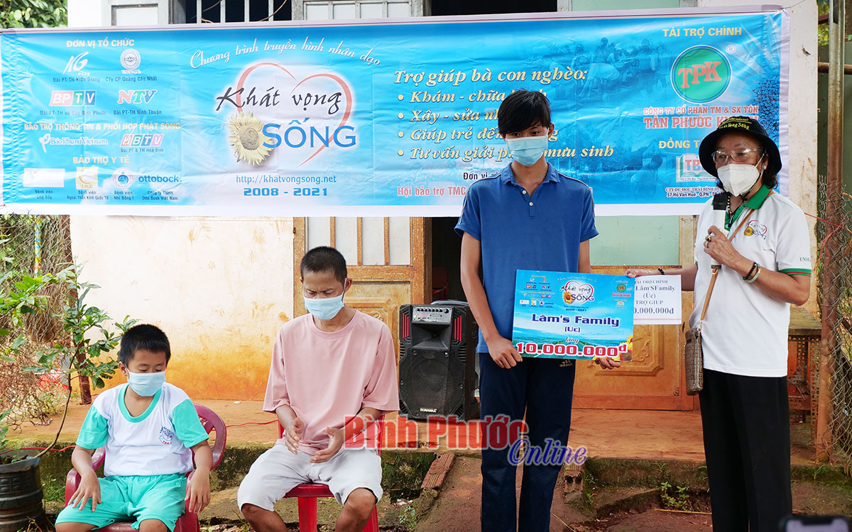 Thông qua chương trình “Khát vọng sống”, Lâm’s Family (Úc) gửi 10 triệu đồng trợ giúp hoàn cảnh của gia đình em Dương Đăng Khôi