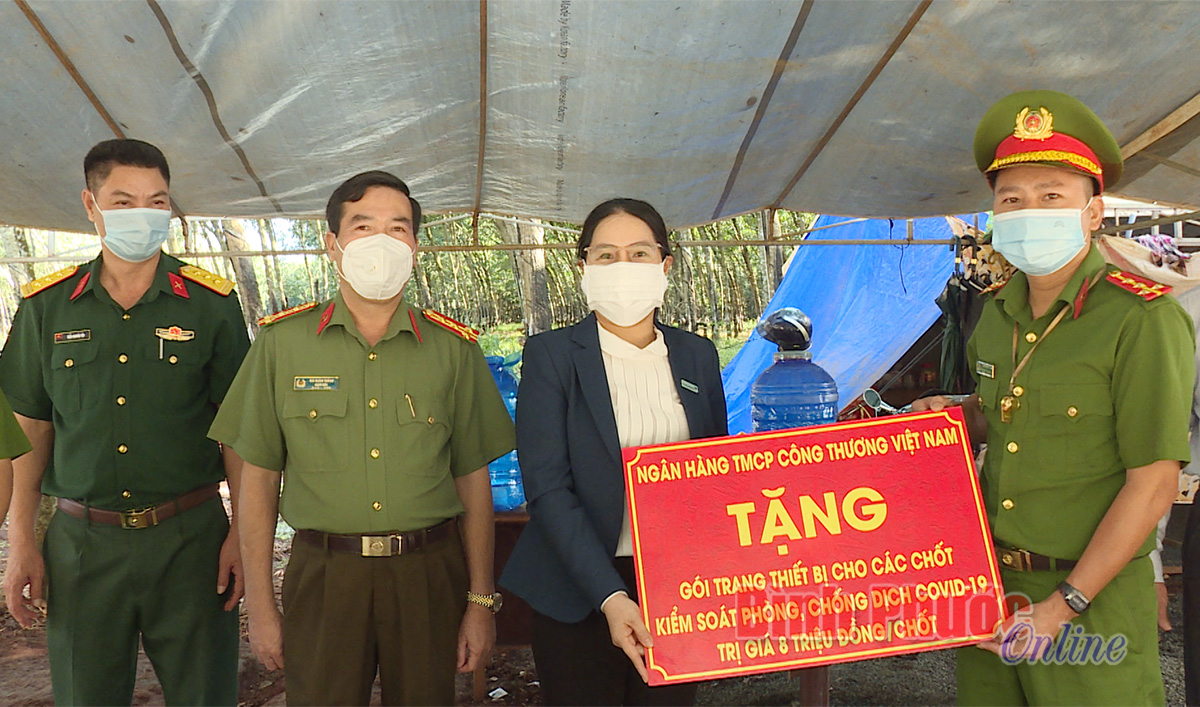 Giám đốc Công an tỉnh Bùi Xuân Thắng đã thăm hỏi, động viên tinh thần các cán bộ, chiến sĩ và lực lượng đang thực hiện công tác phòng, chống dịch tại chốt. Đồng thời, trao tặng gói vật dụng thiết yếu trị giá 8 triệu đồng do Ngân hàng thương mại cổ phần Công thương Việt Nam chi nhánh Bình Phước tài trợ.