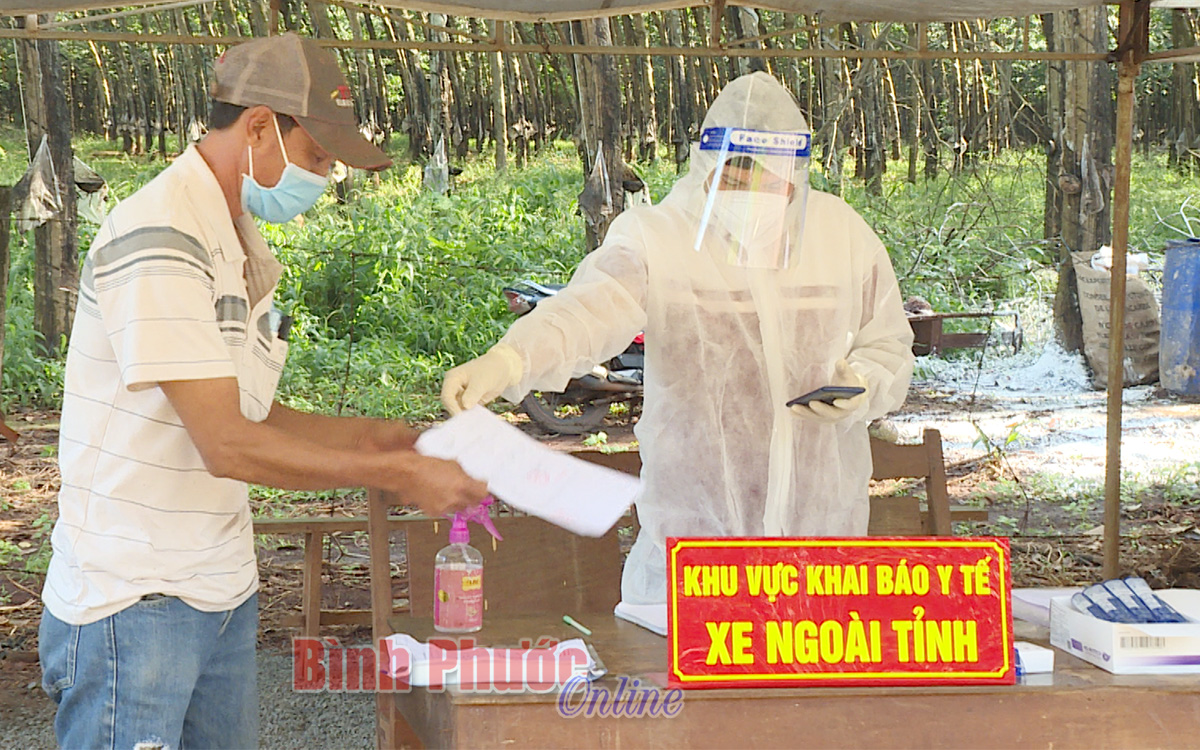 Chốt kiểm soát và phòng, chống dịch Covid-19 Đa Kia thực hiện kiểm soát người và phương tiện đến/về huyện Bù Gia Mập