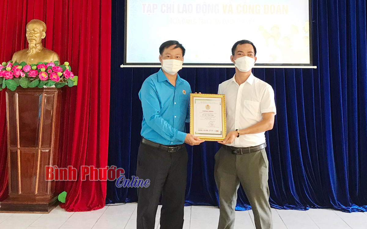 Sáng nay (30-10), thừa ủy quyền của Ban tổ chức cuộc thi, Phó chủ tịch LĐLĐ tỉnh Mạc Đình Huấn đã dự chương trình tọa đàm “Vòng tay Công đoàn” được tổ chức online, trực tiếp trao giải cho tác giả Xuân Hiệp và nhân vật Nguyễn Quốc Toàn tại điểm cầu Bình Phước.
