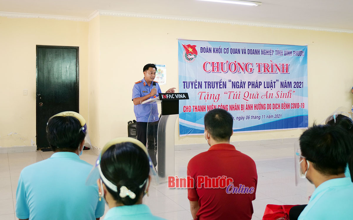 Hướng tới kỷ niệm Ngày Pháp luật Việt Nam (9-11), dịp này, Chi hội Luật gia Viện Kiểm sát nhân dân tỉnh đã thông tin những quy định về quyền, nghĩa vụ của người lao động theo quy định của Bộ luật Lao động năm 2019 (có hiệu lực từ ngày 1-1-2021) và một số loại tội phạm liên quan đến phòng, chống dịch Covid-19 hiện nay tới TNCN.