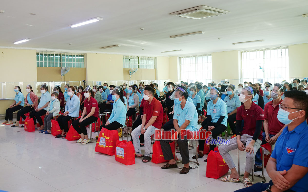 Công ty TNHH Infac Vina hiện có hơn 500 công nhân, đã thực hiện “3 tại chỗ” gần 4 tháng. Trong đó, 95% công nhân đã được tiêm vắc xin phòng Covid-19 mũi 1. Nhằm kịp thời động viên TNCN yên tâm lao động sản xuất, cụm thi đua số 5 đã trao tặng 100 túi quà an sinh (250 ngàn đồng/túi) cho TNCN có hoàn cảnh khó khăn của doanh nghiệp.