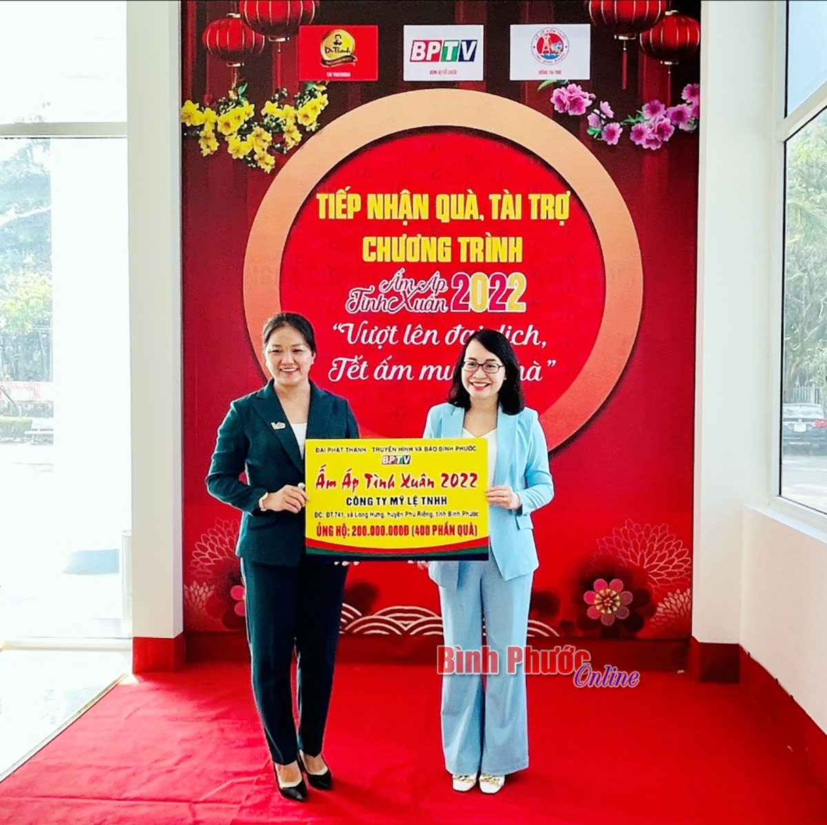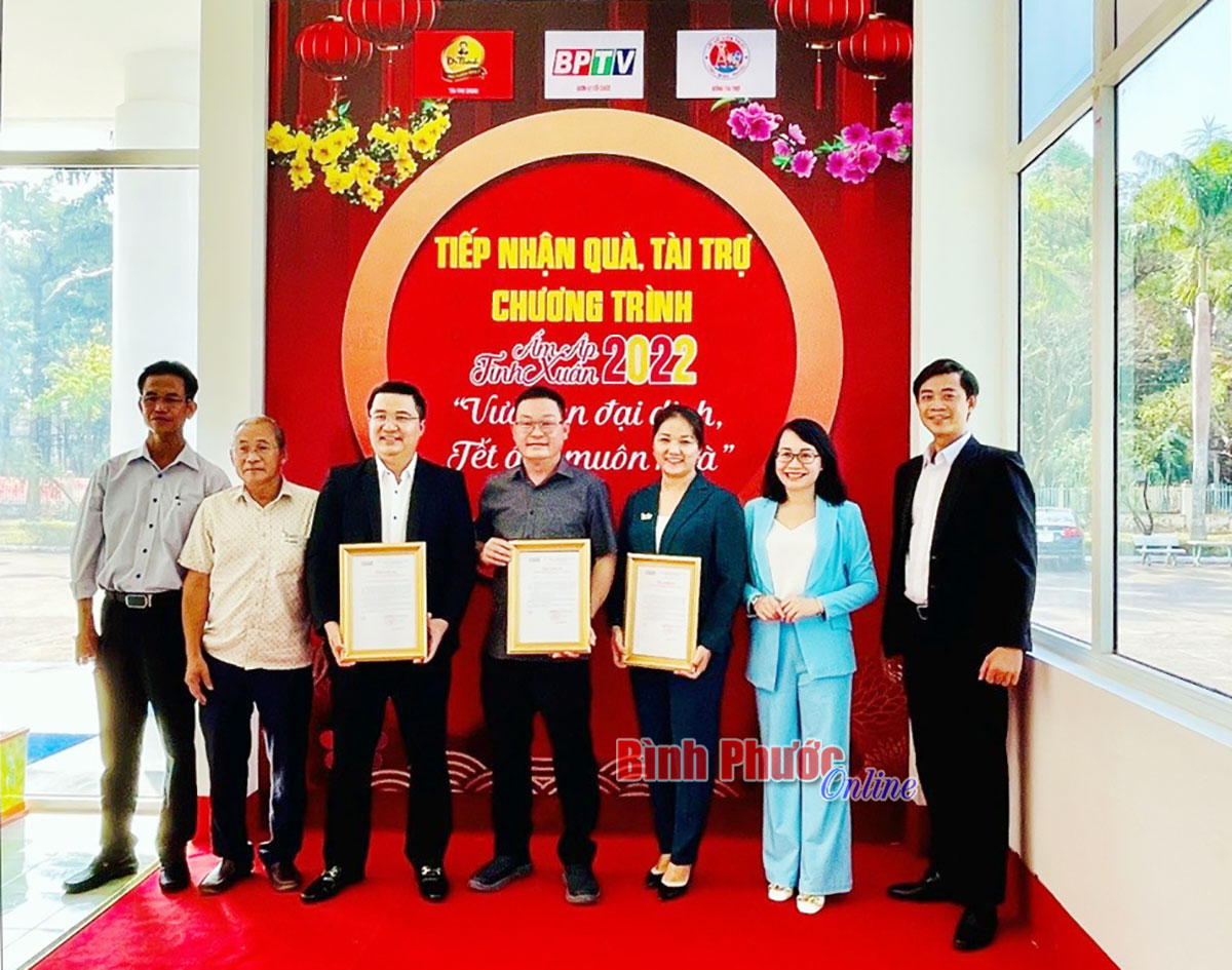Tại lễ tiếp nhận, đại diện lãnh đạo BPTV đã lần lượt tiếp nhận quà của các nhà tài trợ: Công ty Mỹ Lệ TNHH ở xã Long Hưng, huyện Phú Riềng ủng hộ 500 phần; Công ty CP Tập đoàn BĐS Thiên An Holdings - Chi nhánh Bình Phước, số 273, đường Lê Quý Đôn, phường Tân Xuân, TP. Đồng Xoài ủng hộ 400 phần; Công ty CP Tư vấn địa ốc và xây dựng An Đức ở TP. Thủ Dầu Một, tỉnh Bình Dương ủng hộ 100 phần và Chi hội Nữ doanh nhân thị xã Phước Long ủng hộ 60 phần. Mỗi phần quà trị giá 500 ngàn đồng tiền mặt.