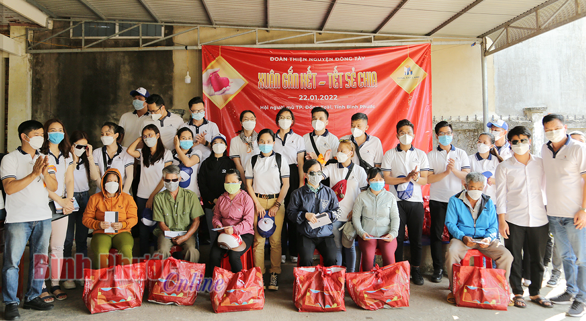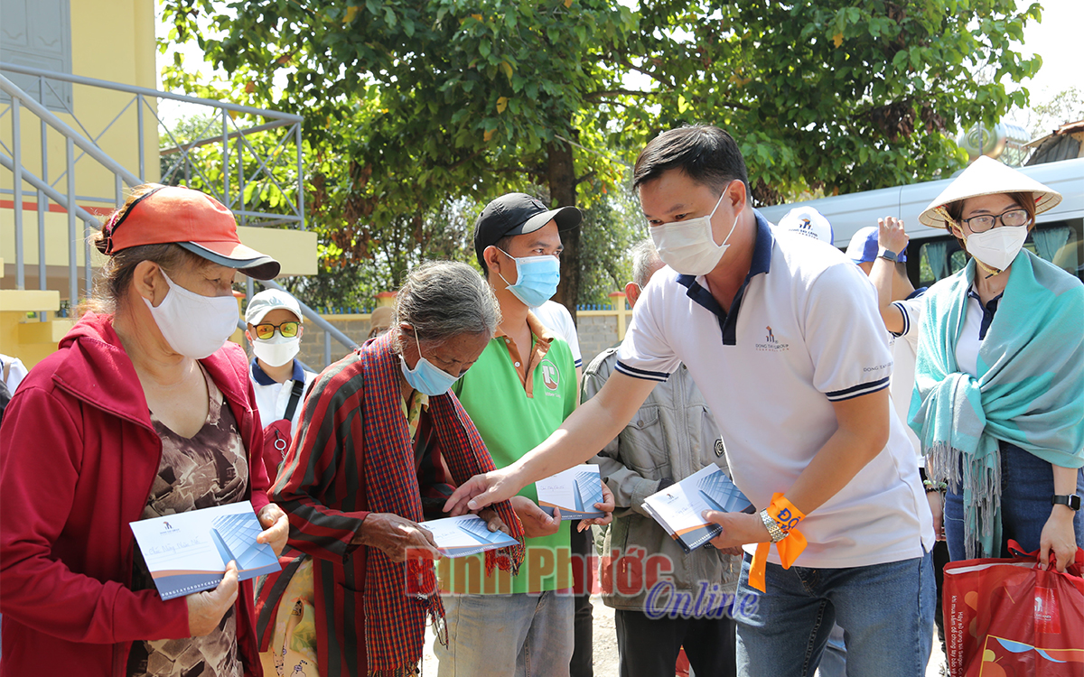 Đoàn đã tặng 100 phần quà cho người nghèo xã Phước Minh, huyện Bù Gia Mập; 50 phần quà cho hội viên Hội Người mù thành phố Đồng Xoài và 50 phần quà cho hội viên Hội Người mù huyện Đồng Phú. Mỗi phần quà trị giá 500 ngàn đồng, gồm các nhu yếu phẩm như gạo, dầu ăn, bột ngọt, đường và 200 ngàn đồng tiền mặt.