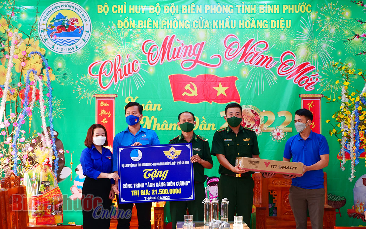 Các đơn vị còn trao tặng 10 suất học bổng, trị giá 500 ngàn đồng/suất cho học sinh trong chương trình “Nâng bước em đến trường” và con nuôi của Đồn biên phòng cửa khẩu Hoàng Diệu (Bộ đội biên phòng Bình Phước); thăm, chúc tết và tặng công trình thanh niên “Ánh sáng biên cương” trị giá 21,5 triệu đồng cho cán bộ, chiến sĩ Đồn biên phòng cửa khẩu Hoàng Diệu.