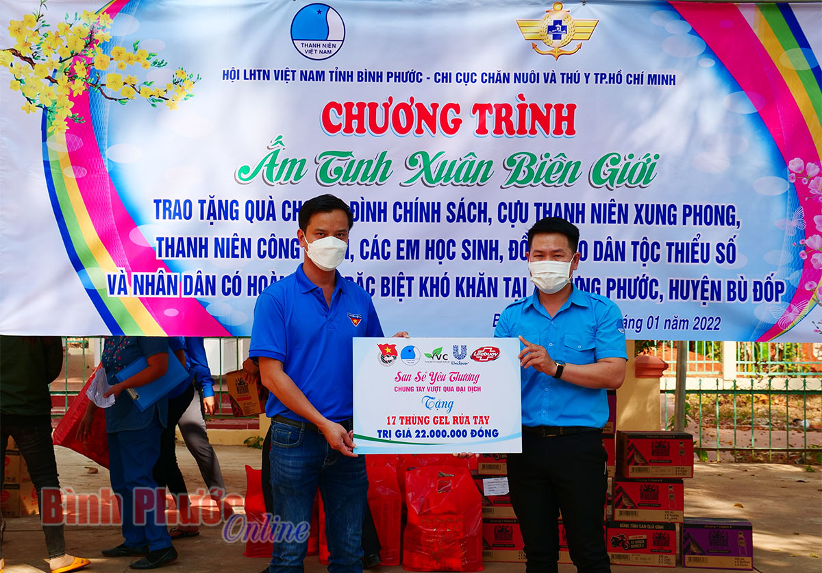 Dịp này, ban tổ chức chương trình cũng trao tặng gần 50 thùng gel rửa tay sát khuẩn, trị giá hơn 61 triệu đồng cho các đơn vị huyện, thị đoàn Bình Long, Hớn Quản, Lộc Ninh và Bù Đốp.