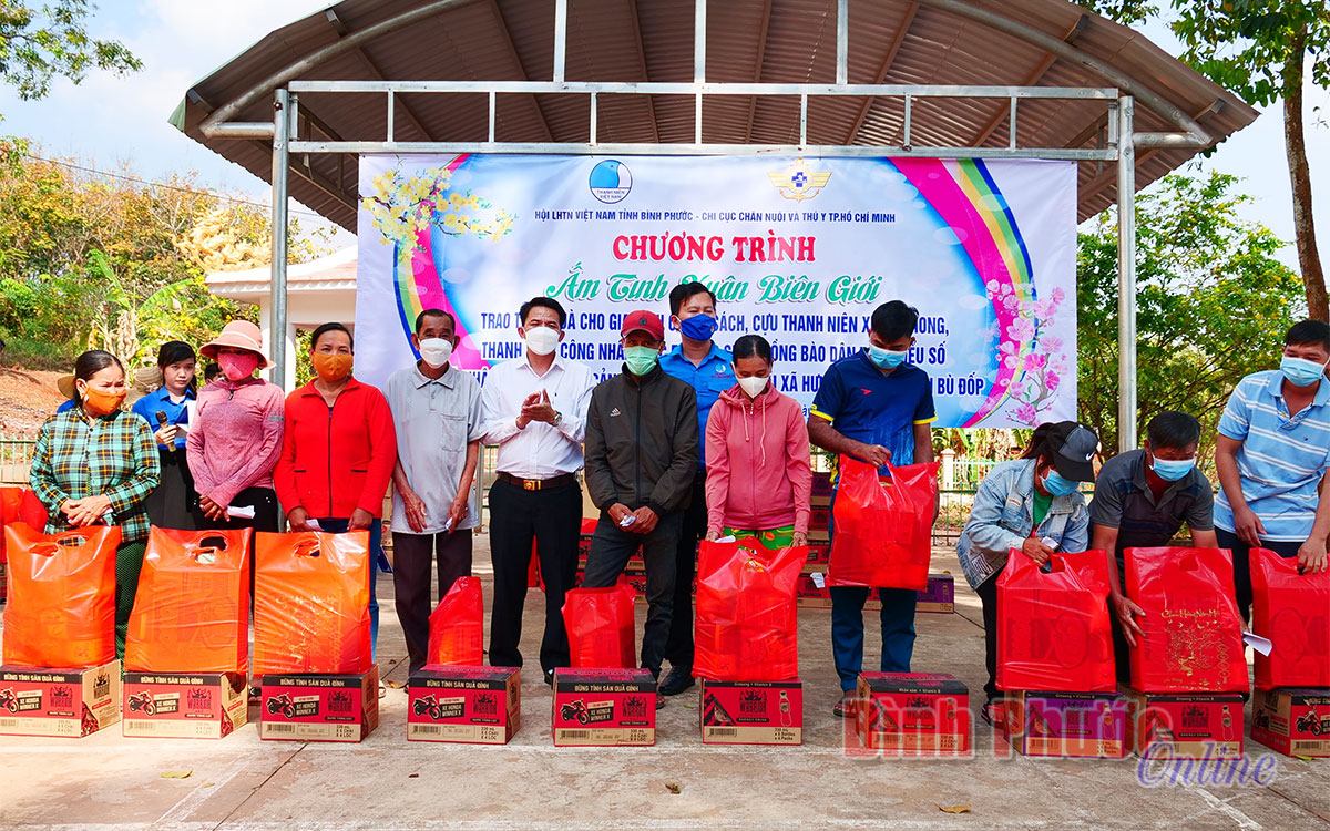 Tại xã Hưng Phước (Bù Đốp), Hội LHTN Việt Nam tỉnh cùng Chi cục Chăn nuôi và Thú y TP. Hồ Chí Minh và Câu lạc bộ Zumba Dance Bình Phước trao tặng 52 phần quà tết, trị giá 500 ngàn đồng/phần cho các hộ đồng bào dân tộc thiếu số, gia đình chính sách, người dân và thanh niên công nhân có hoàn cảnh khó khăn.