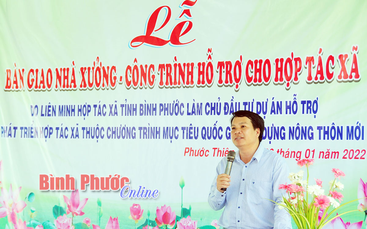 Chủ tịch Liên minh Hợp tác xã tỉnh Hà Văn Kiên phát biểu tại lễ bàn giao