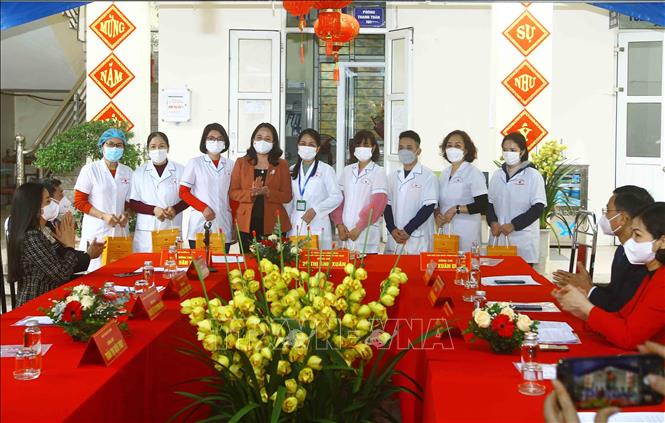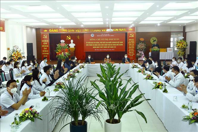 Phó Chủ tịch nước Võ Thị Ánh Xuân thăm và làm việc với Bệnh viện Đa khoa Đức Giang. Ảnh: An Đăng/TTXVN