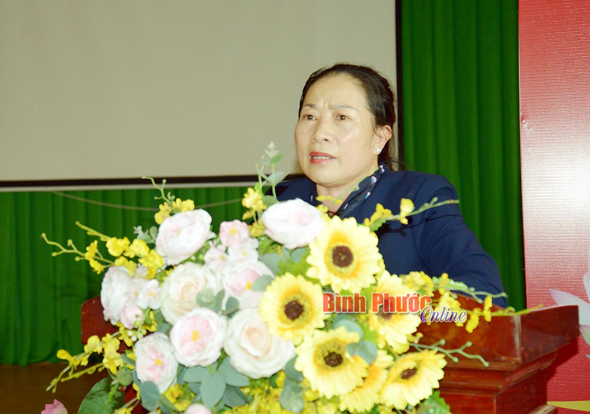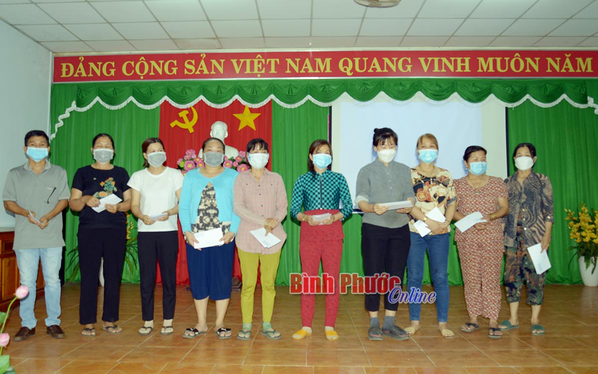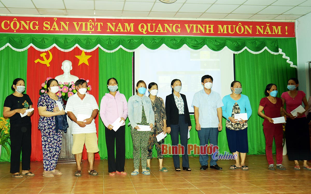 Chủ tịch UBND thị xã Bình Long Hoàng Thị Hồng Vân trao quà cho các hộ tiểu thương