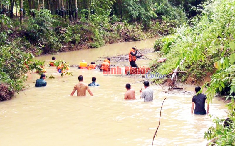 Ngay sau khi nhận được tin báo, chính quyền xã Tân Lợi phối hợp lực lượng Công an, dân quân và người dân địa phương đã thâu đêm tổ chức tìm kiếm khu vực em M. mất tích.