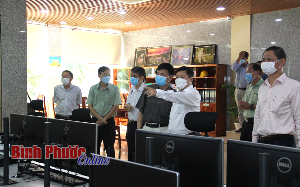 Tổng giám đốc Nguyễn Văn Non giới thiệu các thiết bị với đoàn kiểm tra tại phòng điều khiển trung tâm
