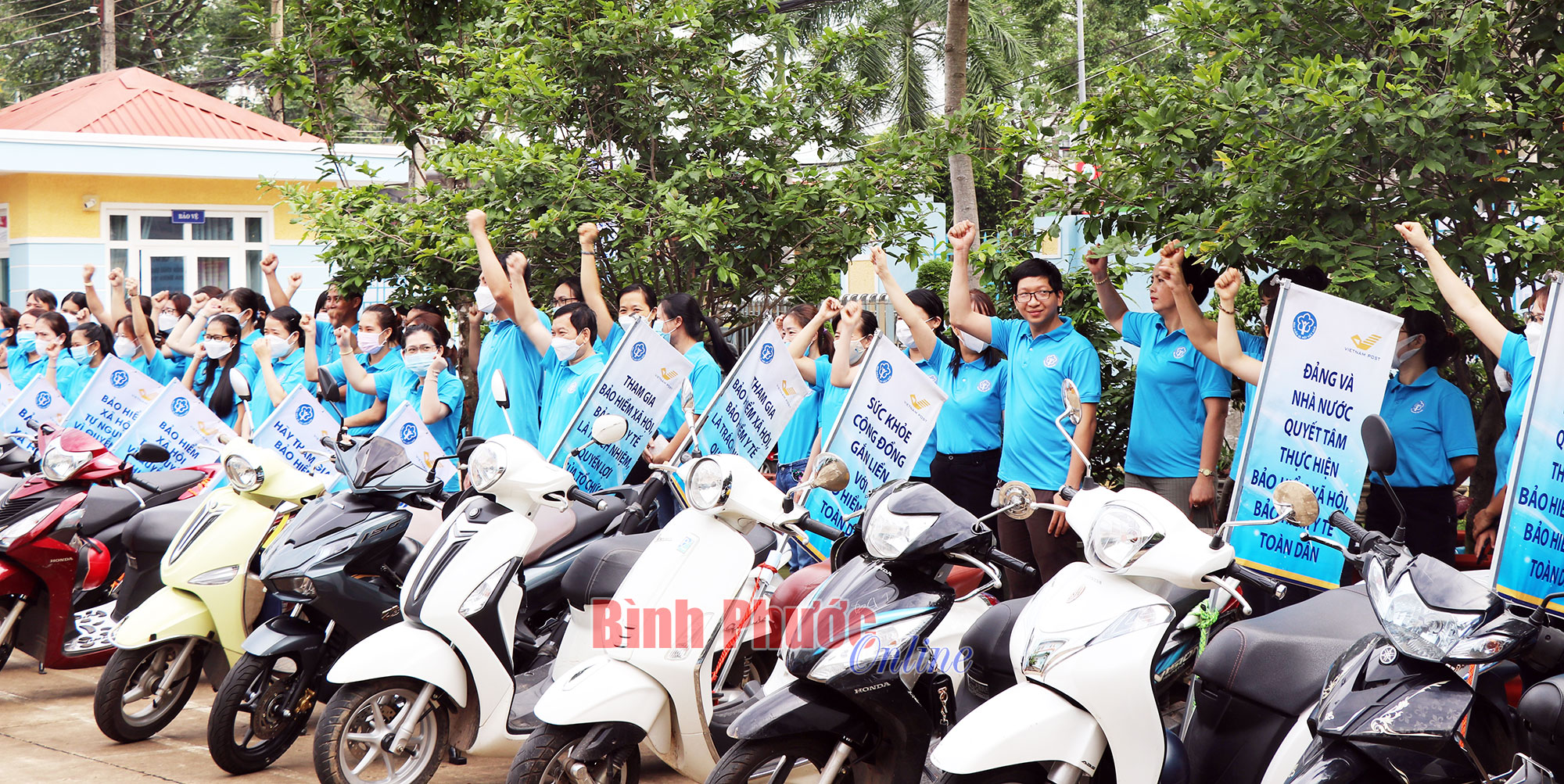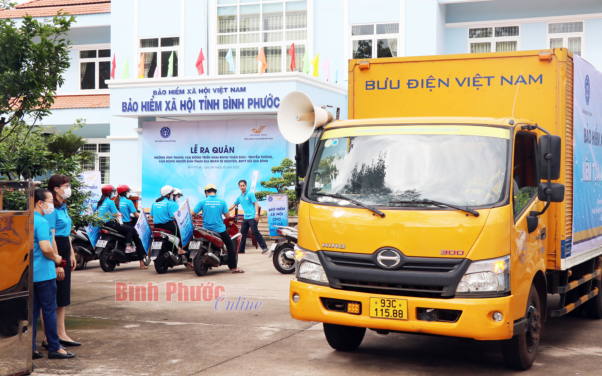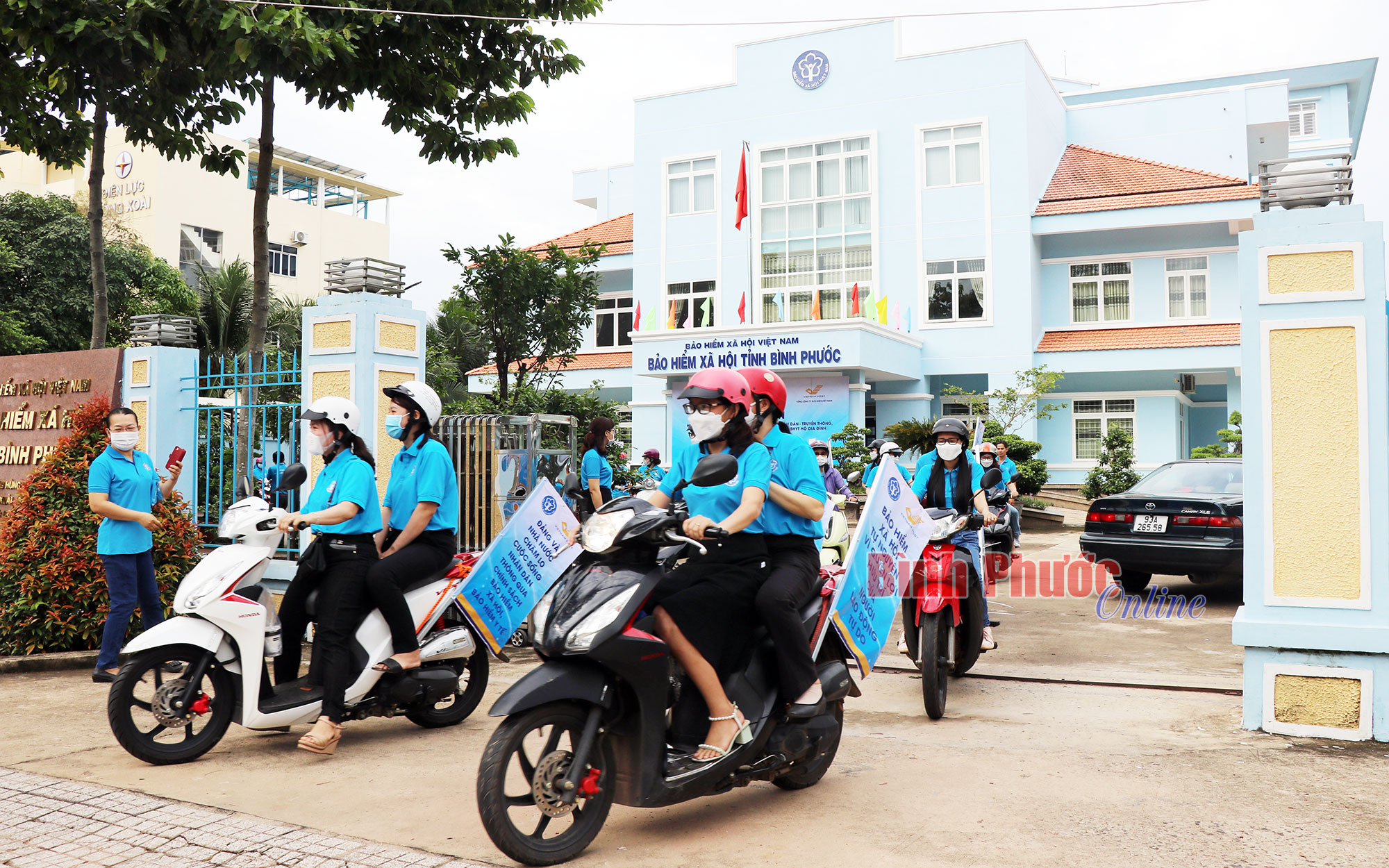 Tại điểm cầu tỉnh Bình Phước, tham dự có lãnh đạo một số sở, ngành liên quan. Ngay sau lễ phát động, lực lượng diễu hành, cổ động, tuyên truyền, tư vấn đã diễu hành tuyên truyền lưu động trên các tuyến đường chính của thành phố Đồng Xoài. Đồng thời, tại các huyện, thị xã trong tỉnh, lực lượng cán bộ BHXH, Bưu điện cũng đồng loạt ra quân với mục tiêu trong ngày hoàn thành 550 người tham gia BHXH, BHYT tự nguyện.