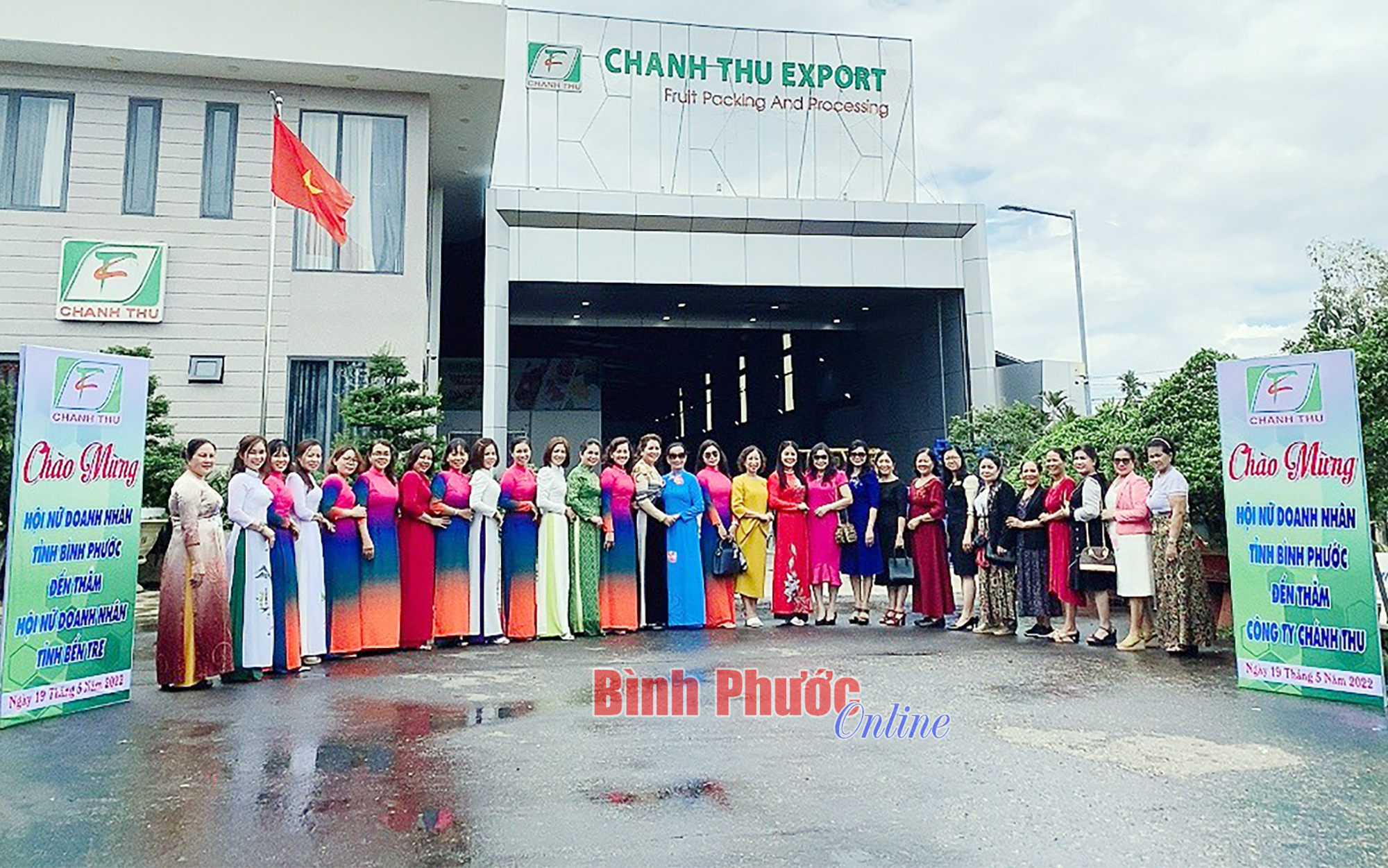 Đoàn nữ doanh nhân tỉnh Bình Phước và Bến Tre chụp hình lưu niệm tại Công ty Chánh Thu