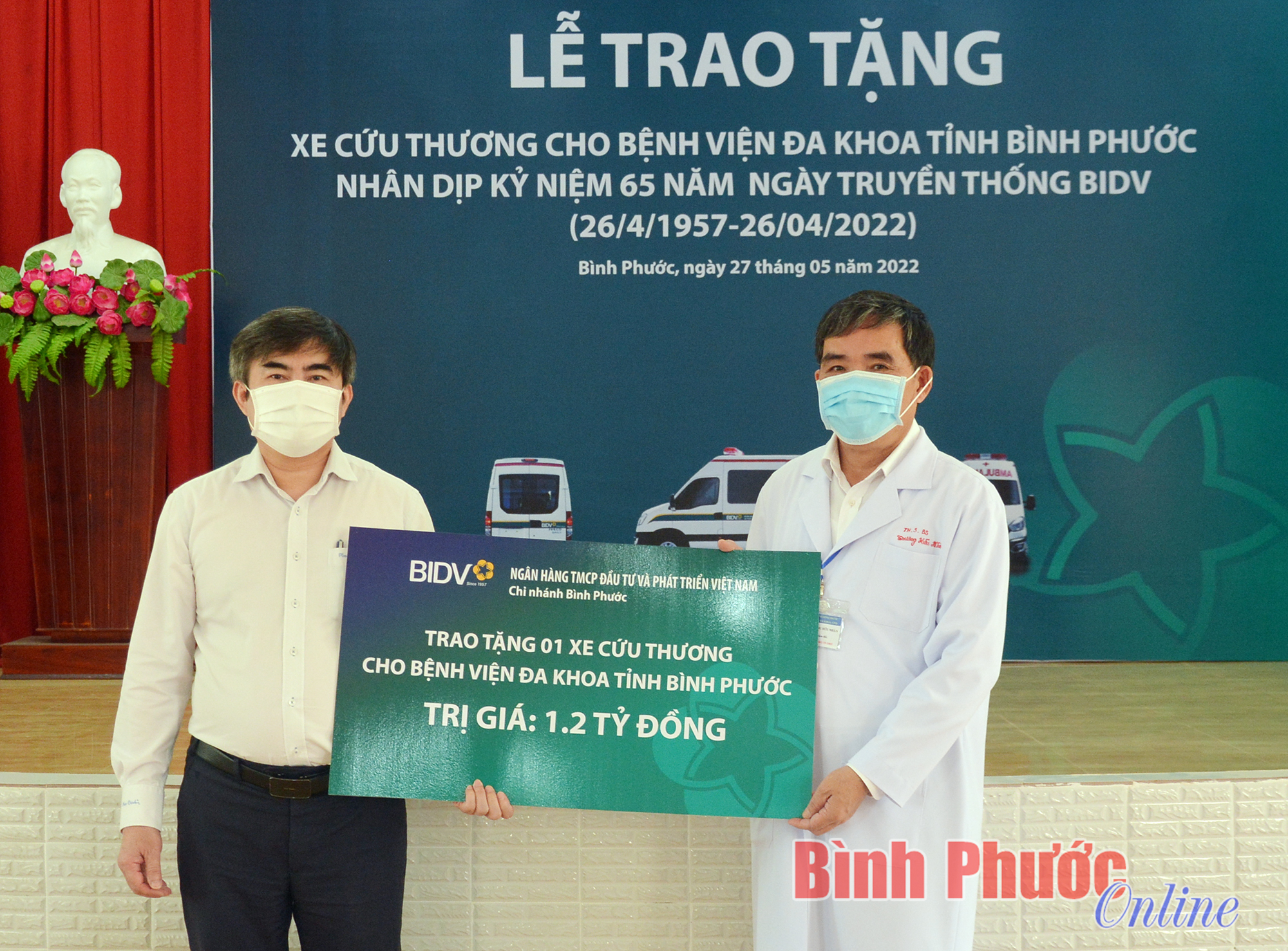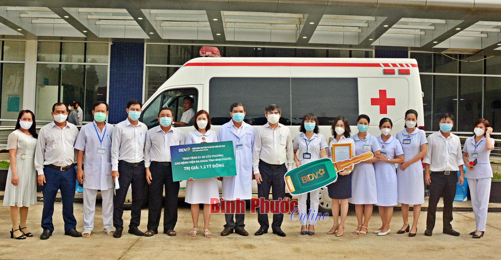 Đây là hoạt động cùng chung tay thực hiện công tác an sinh xã hội, hướng đến việc thực hiện tốt hơn công tác chăm sóc sức khỏe cộng đồng. Xe cứu thương này được thiết kế theo yêu cầu riêng của BIDV, nhằm hỗ trợ tốt nhất cho người bệnh trong quá trình di chuyển. BIDV Bình Phước mong muốn Bệnh viện đa khoa tỉnh sử dụng, phát huy tốt nhất các tính năng của xe.