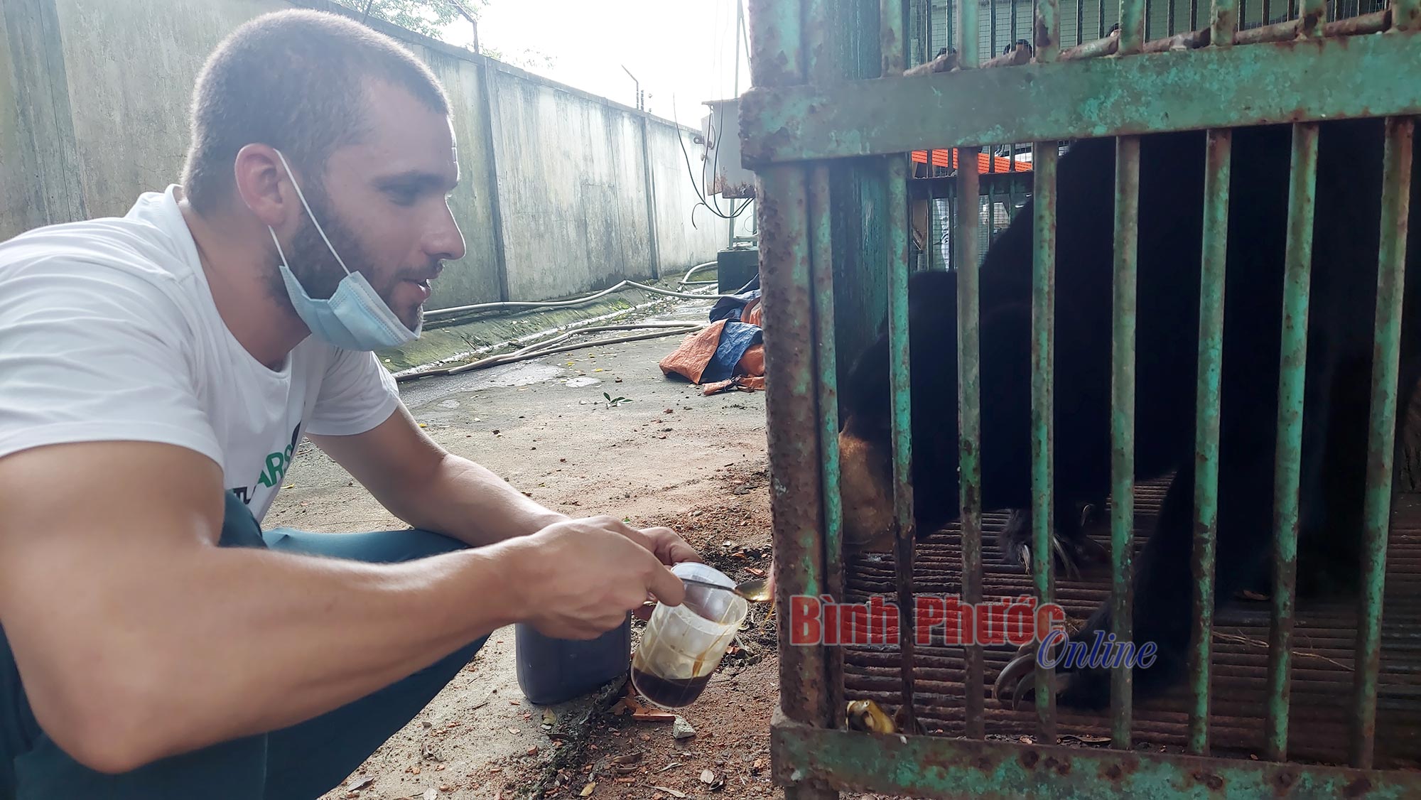 Nhân viên Trung tâm gấu của Free the Bears cho gấu uống mật ong