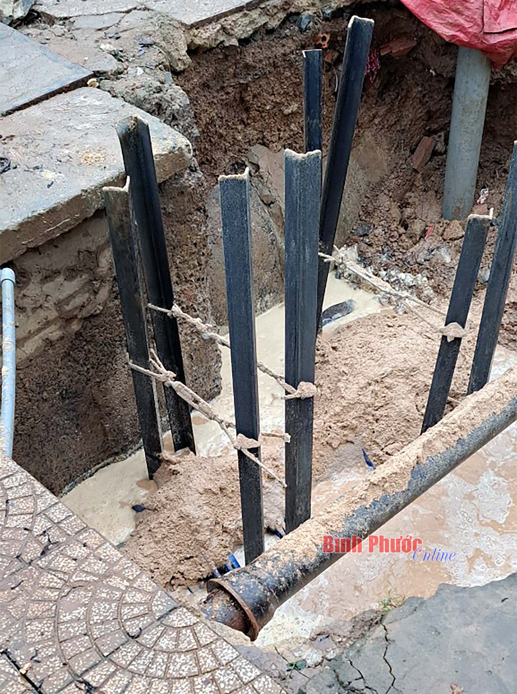 Lực lượng của Công ty cổ phần cấp thoát nước Bình Phước nỗ lực khắc phục sự cố