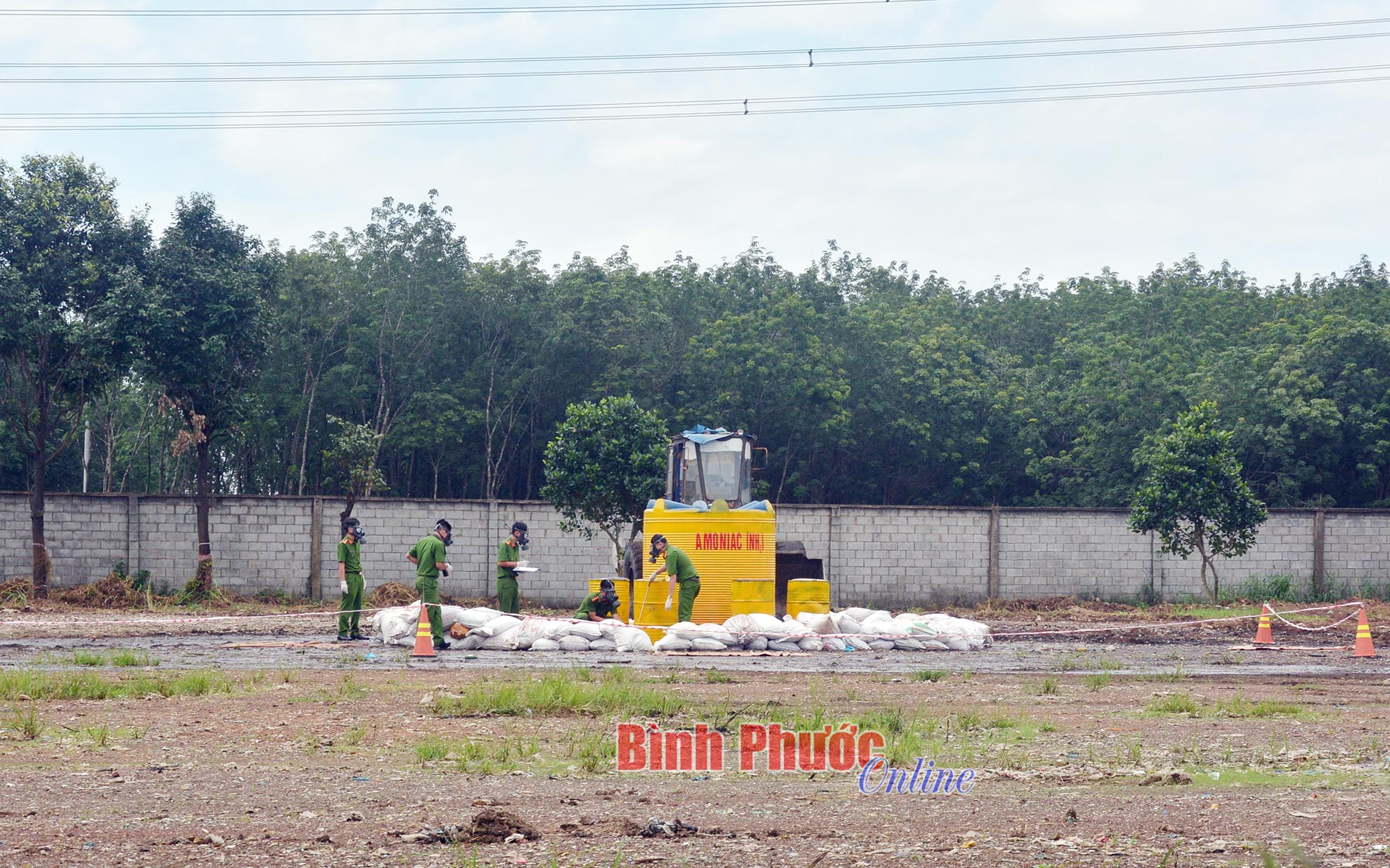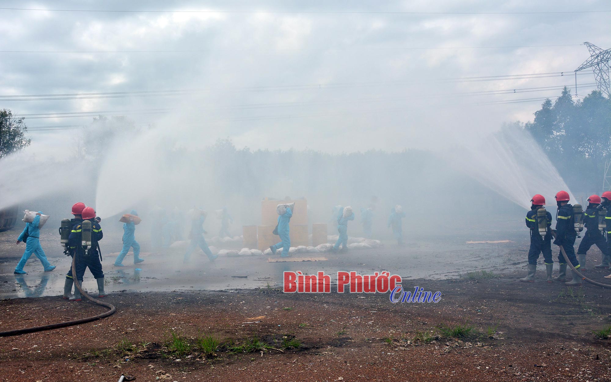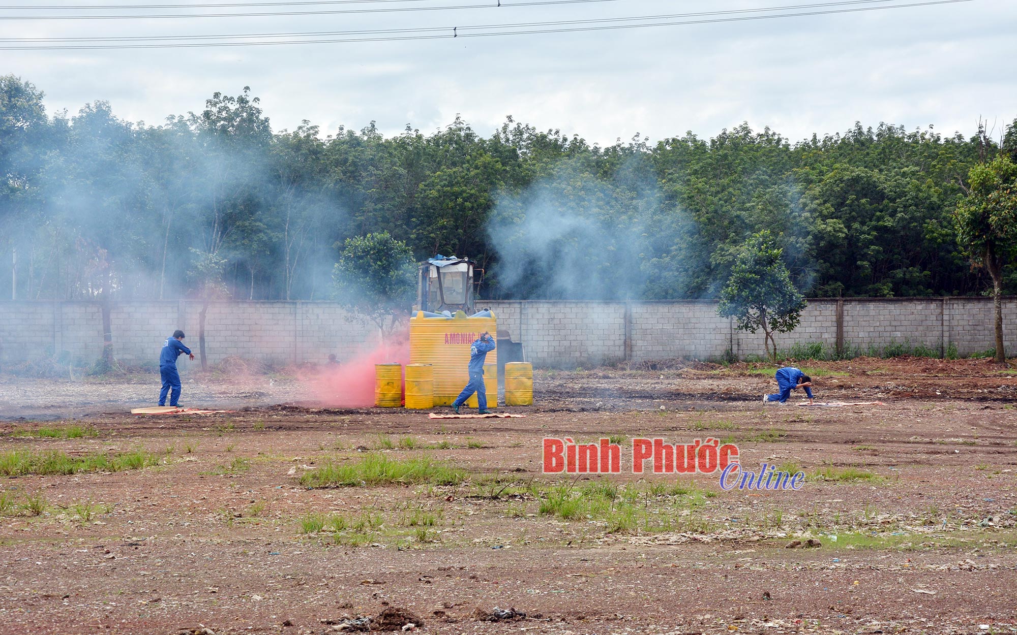 Tại buổi diễn tập, Ban tổ chức đã xây dựng các phương án xử lý, đối phó ngay khi có sự cố rò rỉ hóa chất Amoniac tại nhà máy xử lý chất thải - Công ty Cổ phần đầu tư và phát triển môi trường Bình Phước.