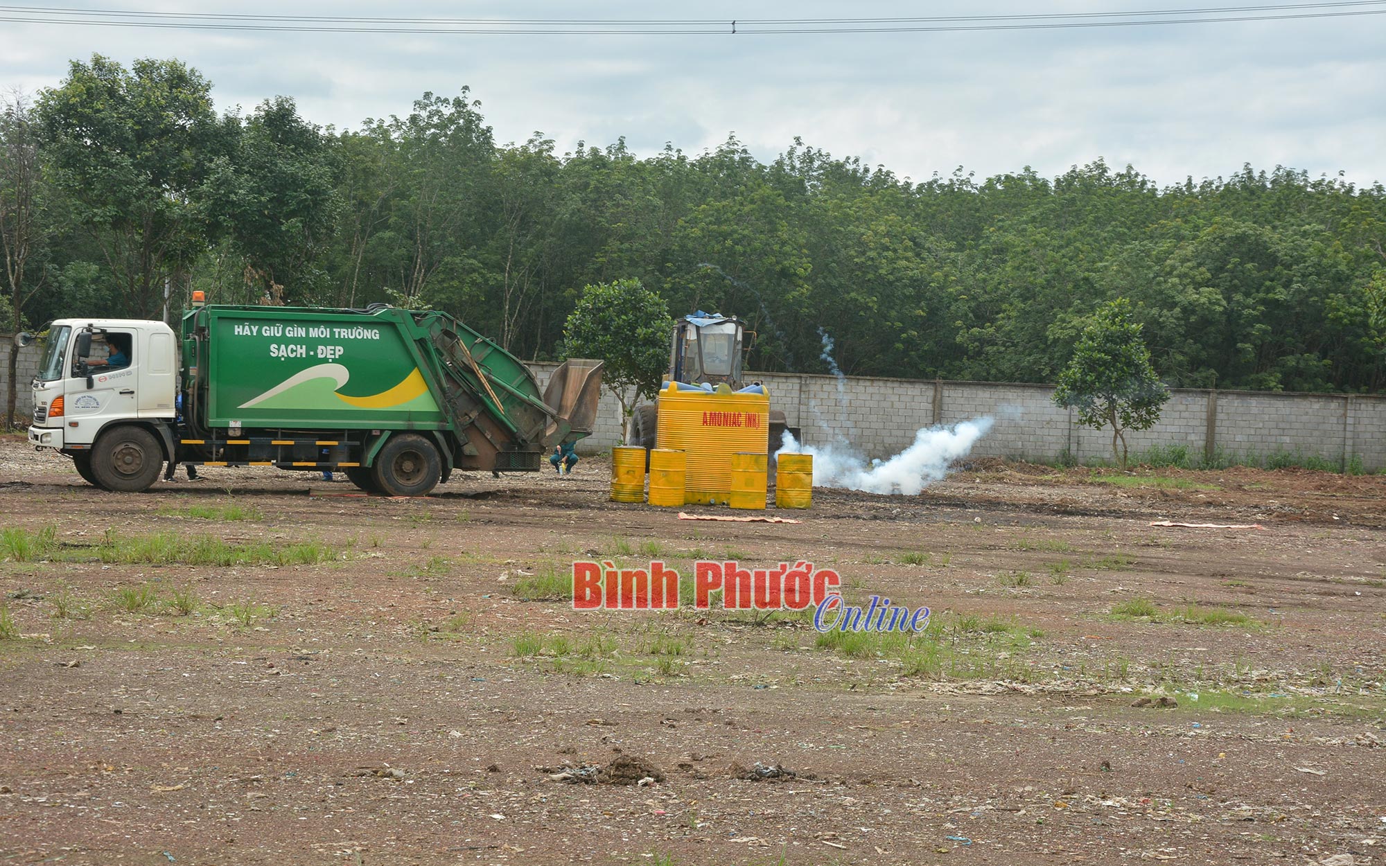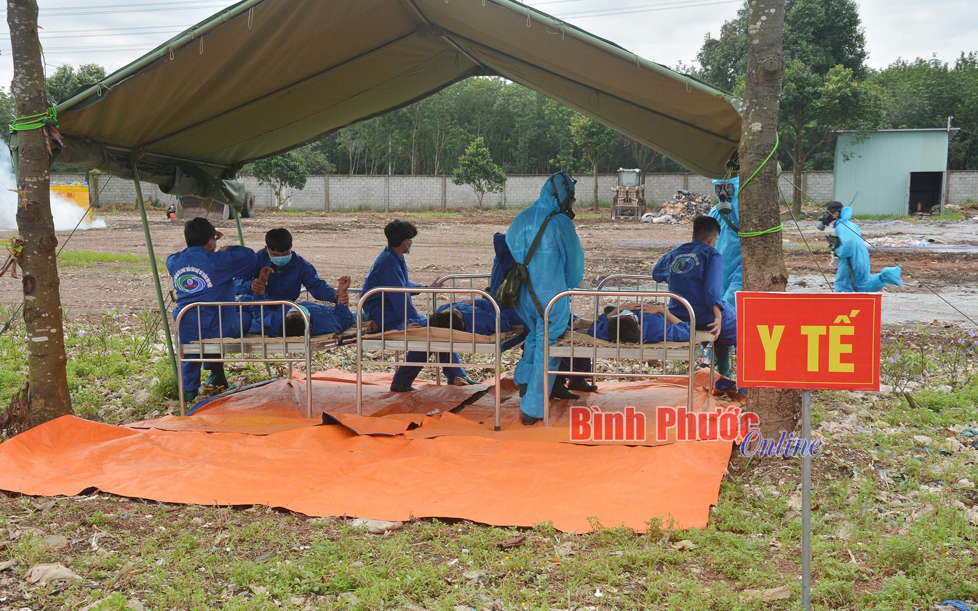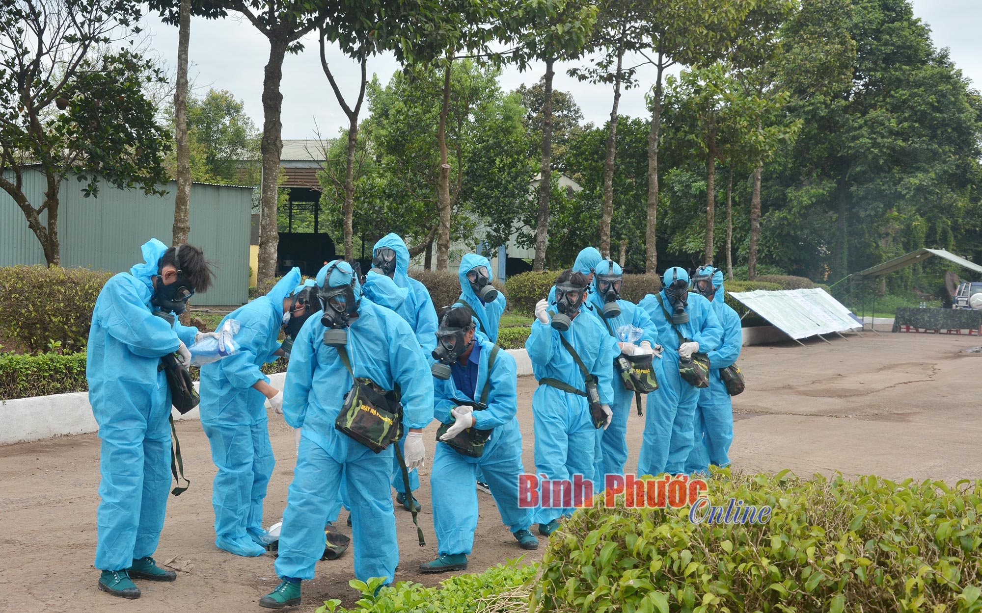 Tại buổi diễn tập, Ban tổ chức đã xây dựng các phương án xử lý, đối phó ngay khi có sự cố rò rỉ hóa chất Amoniac tại nhà máy xử lý chất thải - Công ty Cổ phần đầu tư và phát triển môi trường Bình Phước.