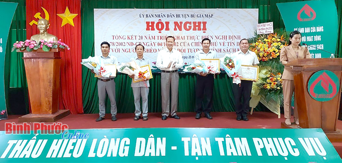 Tính đến ngày 30-6-2022, tổng nguồn vốn tại Ngân hàng Chính sách xã hội huyện Bù Gia Mập là hơn 313 tỷ đồng, tăng trên 180 lần so với năm 2003. Sau 20 năm thực hiện về tín dụng ưu đãi đối với người nghèo và các đối tượng chính sách khác, Ngân hàng Chính sách xã hội huyện Bù Gia Mập đã ủy thác cho vay qua 4 tổ chức chính trị, xã hội gồm 14 chương trình cho vay với tổng dư nợ 312 tỷ 500 triệu đồng, đáp ứng nhu cầu cho trên 44.200 lượt hộ vay vốn sản xuất. Các tổ tín dụng tiết kiệm đã triển khai chính sách linh hoạt, năng động, sáng tạo, phát huy được tính ưu việt của chính sách.