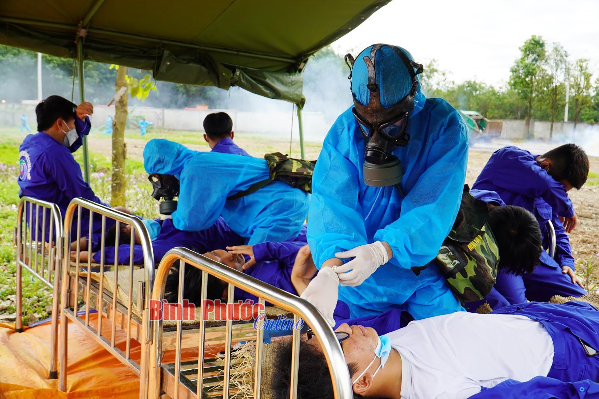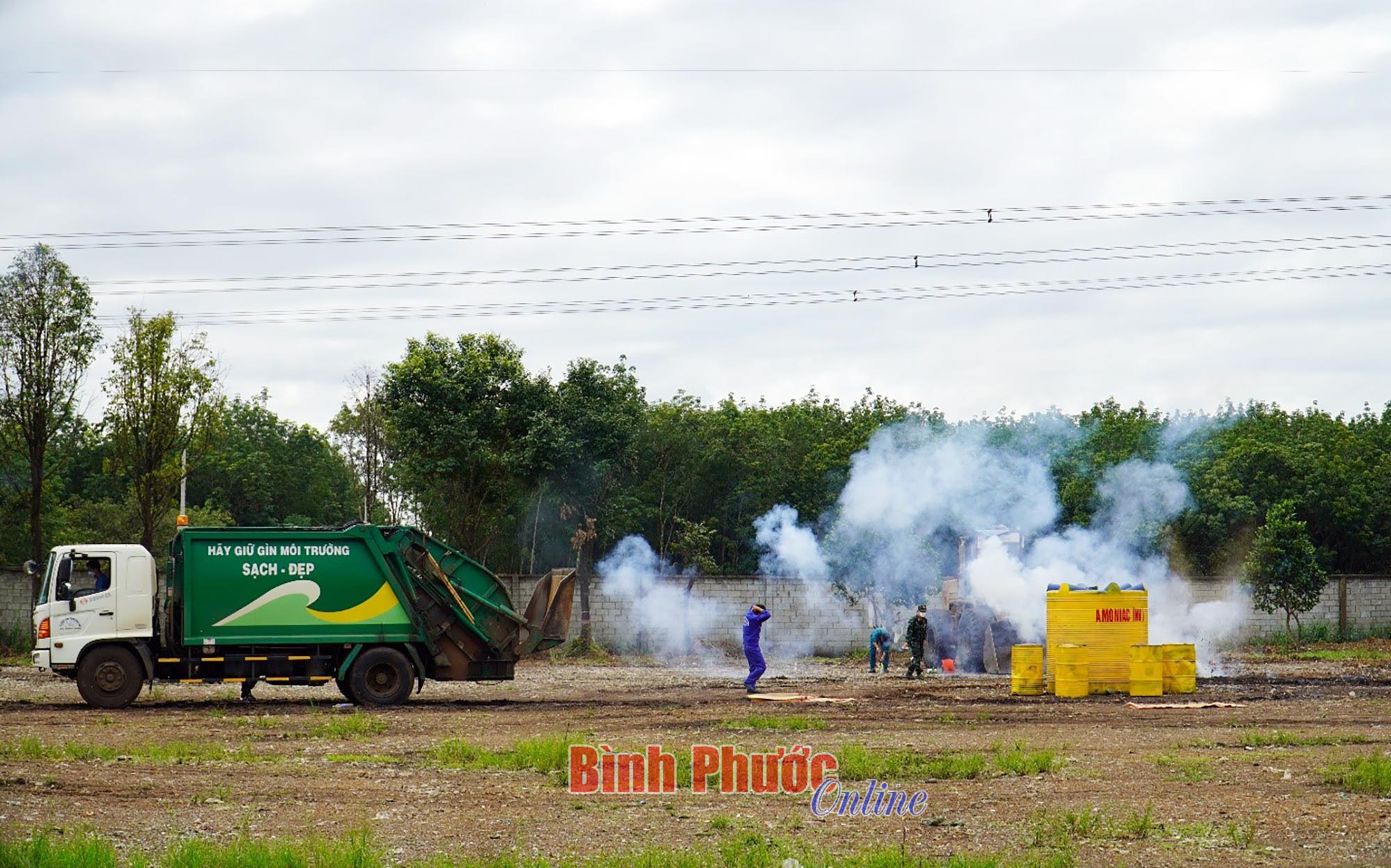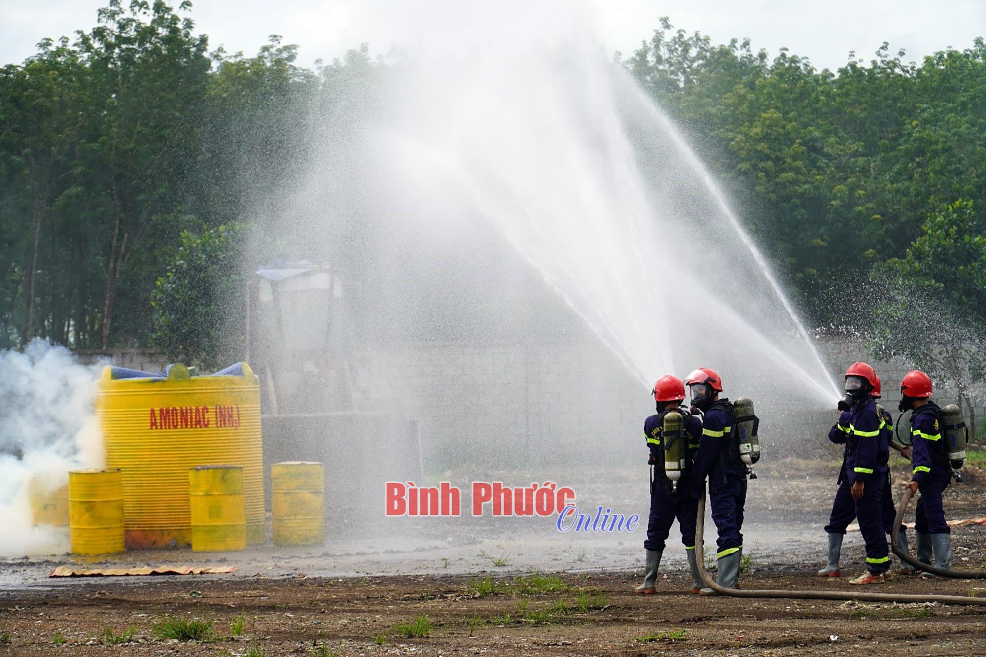 Ngay khi sự cố xảy ra, Ban chỉ đạo phòng thủ dân sự thành phố Đồng Xoài đã triển khai ngay các phương án ứng phó và tổ chức vận hành cơ chế xử lý sự cố rò rỉ, phát tán hóa chất độc hại ra môi trường. Trong phần thực binh, thành phố Đồng Xoài đã huy động các lực lượng quân sự, công an, y tế, tài nguyên môi trường... cùng tham gia ứng phó sự cố.