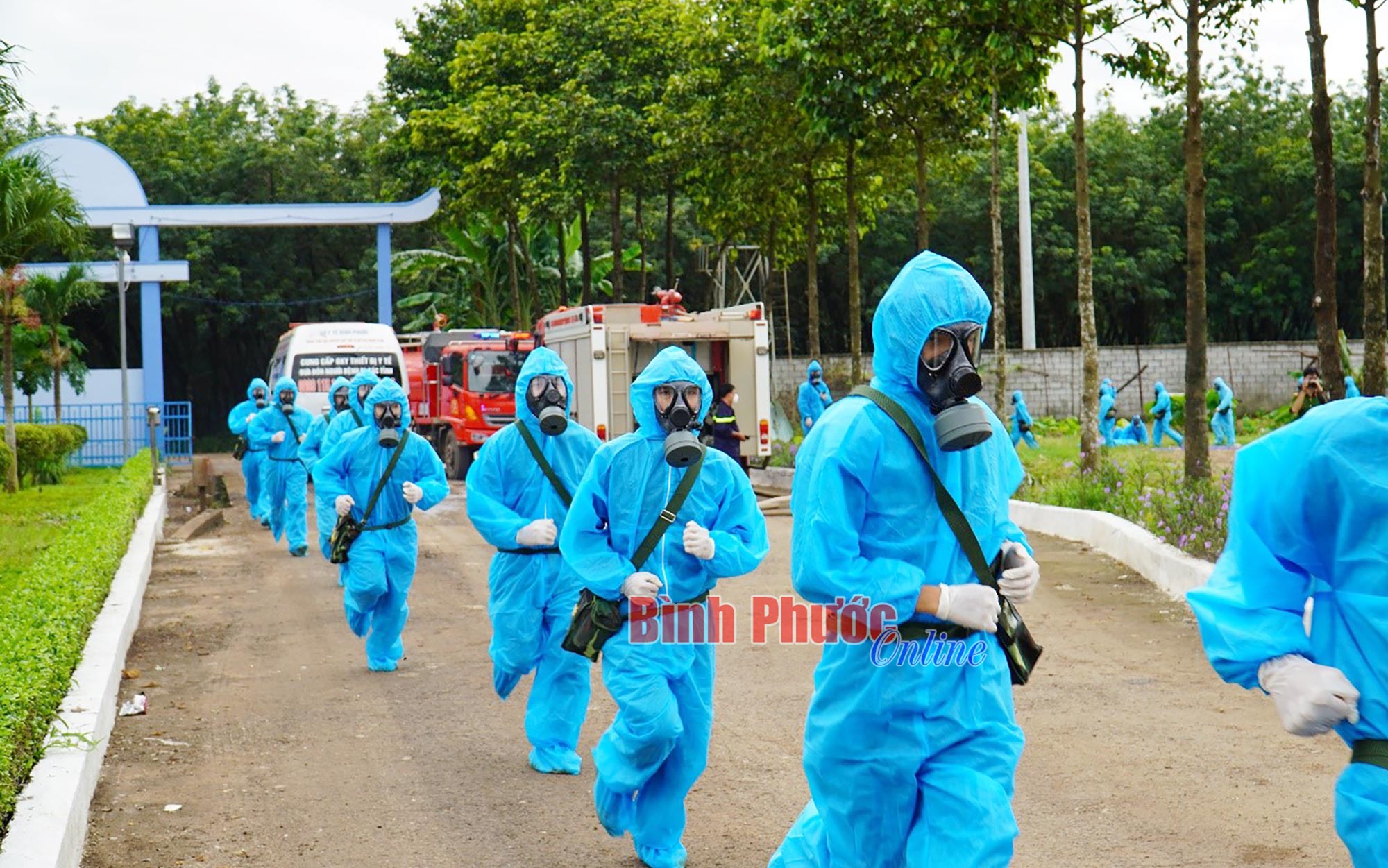 Thực binh xử lý tình huống rò rỉ, phát tán hóa chất tại Công ty cổ phần ĐT&PT công nghệ môi trường Bình Phước