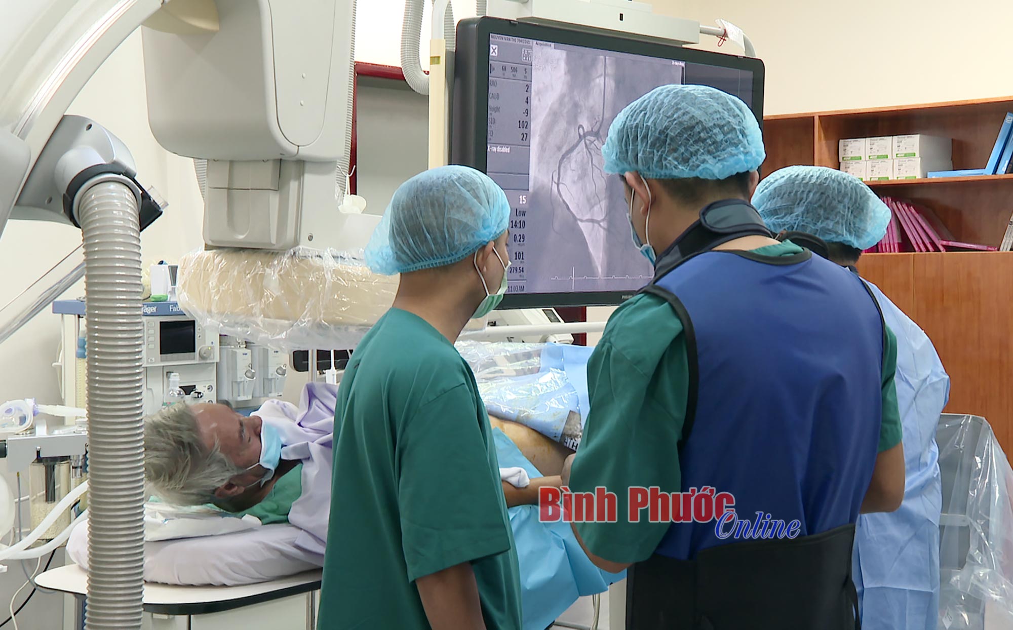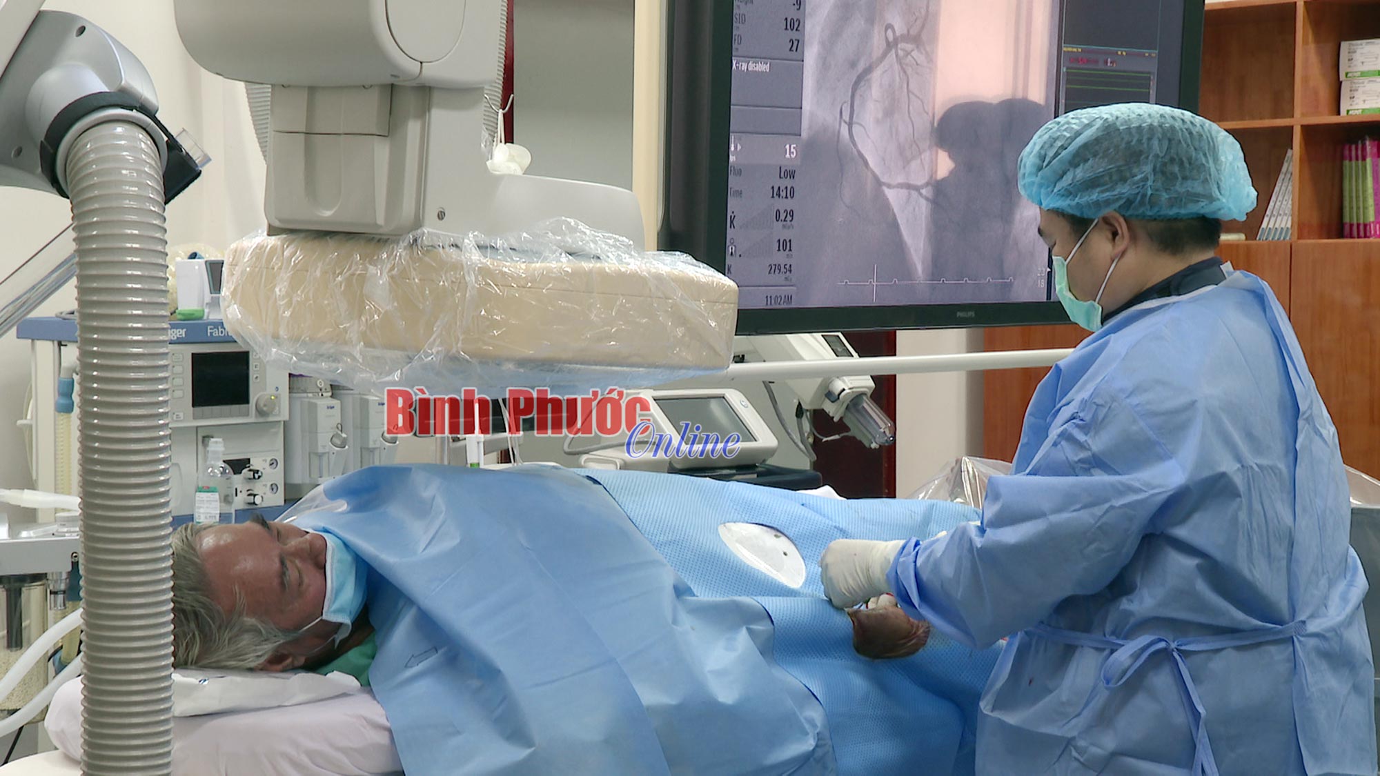 Một tuần trước, bệnh nhân Nguyễn Văn Thi, 68 tuổi ở ấp Thuận Phú 3, xã Thuận Phú, huyện Đồng Phú nhập viện trong tình trạng đau ngực, khó thở. Bác sĩ đã tiến hành can thiệp nội khoa, nhưng sức khỏe ông vẫn không thuyên giảm. Sau khi hội chẩn, bệnh nhân được các bác sĩ xác định bị nhồi máu cơ tim tiên lượng nặng. Hướng xử lý là chụp mạch vành và tái thông mạch vành. Dưới sự giúp đỡ của các bác sĩ Viện Tim TP. Hồ Chí Minh, bệnh nhân đã được chụp chẩn đoán và can thiệp thành công bệnh mạch vành.