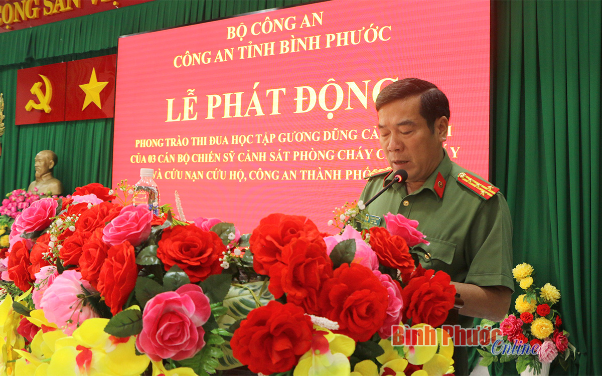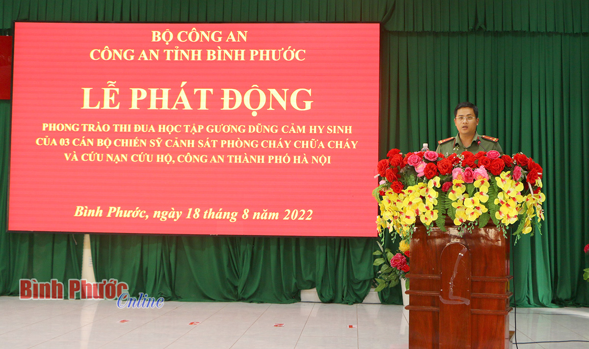Trong không khí trang nghiêm, Đại tá Bùi Xuân Thắng, Giám đốc Công an tỉnh đã phát động phong trào học tập gương dũng cảm hy sinh của 3 liệt sĩ trong lực lượng công an toàn tỉnh với chủ đề: “Cán bộ chiến sĩ Công an Bình Phước phát huy truyền thống anh hùng cách mạng, vì nước quên thân, vì nhân dân phục vụ”.