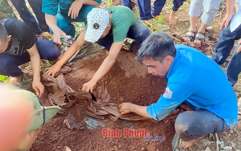 Lực lượng Đội K72, Bộ chỉ huy Quân sự tỉnh Bình Phước cất bốc bộ hài cốt thứ 3 trong đợt quy tập này