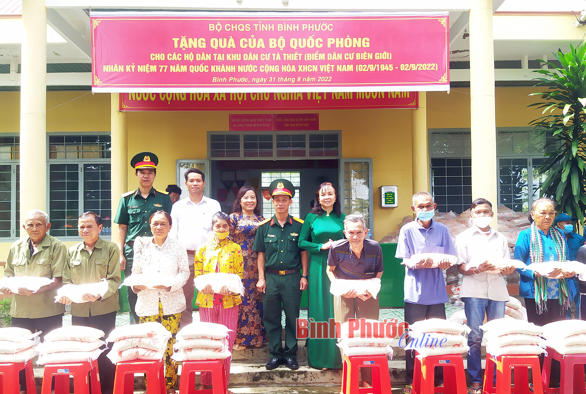 Dịp này, Bộ chỉ huy Quân sự tỉnh Bình Phước tặng 4,2 tấn gạo cho 179 hộ dân là người dân tộc thiểu số thuộc ấp Tà Thiết, xã Lộc Thịnh và 30 hộ dân sống tại điểm dân cư liền kề chốt dân quân biên giới trên địa bàn huyện. Theo đó, mỗi hộ được tặng 20kg gạ, với tổng trị giá trên 60 triệu đồng.