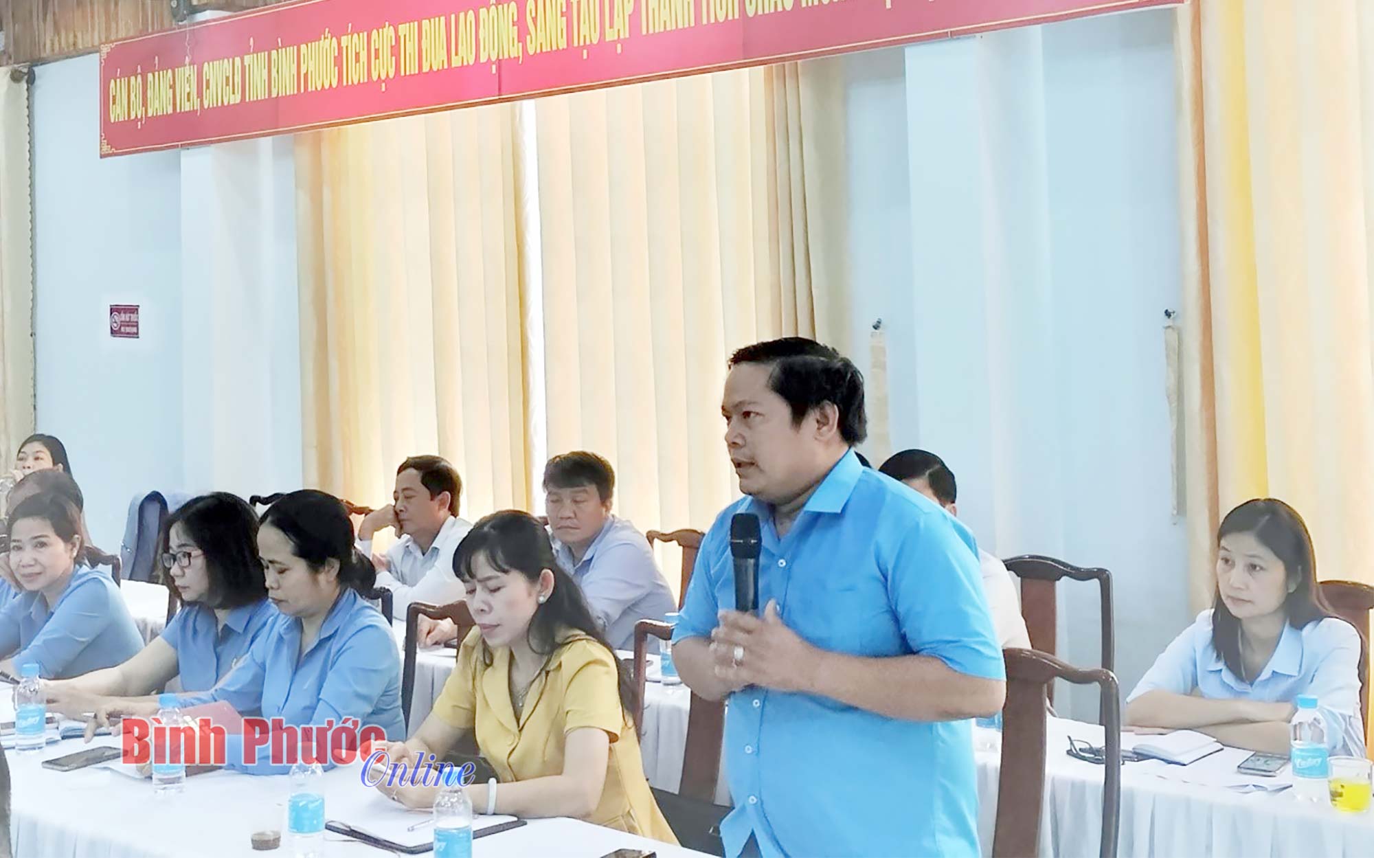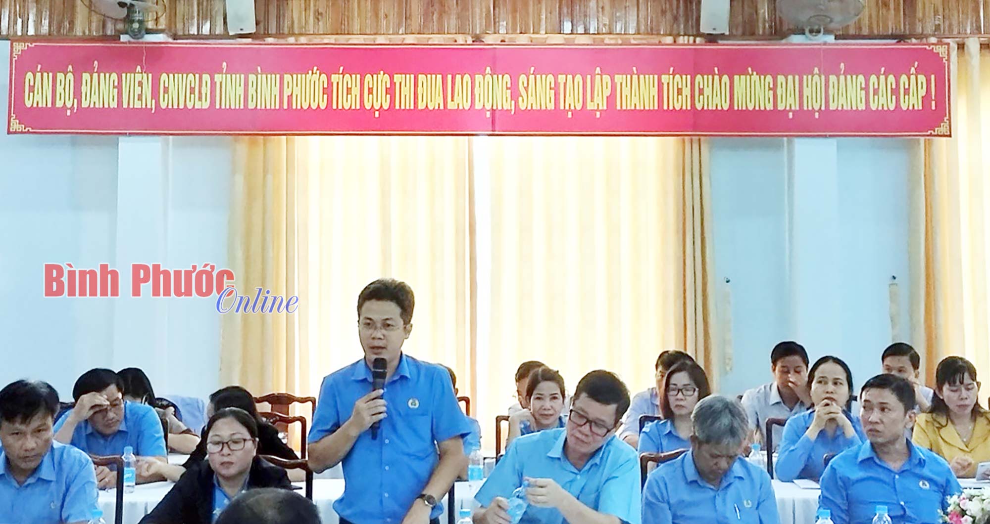 Chủ tịch LĐLĐ thành phố Đồng Xoài Đào Minh Tân phát biểu tại hội nghị