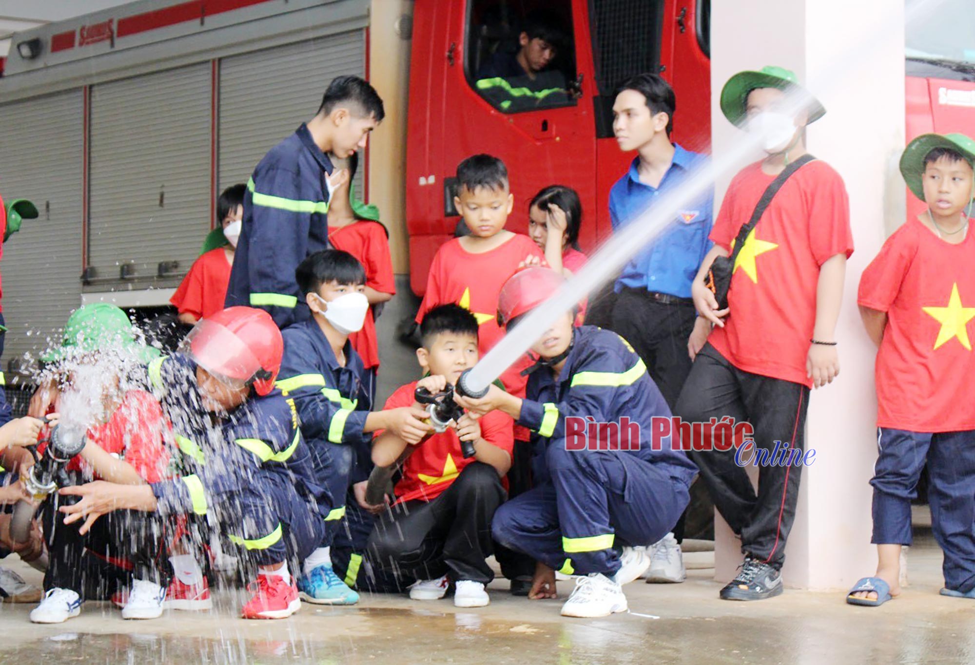 Các em thiếu nhi thích thú tham gia lớp hướng dẫn kỹ năng phòng cháy, chữa cháy